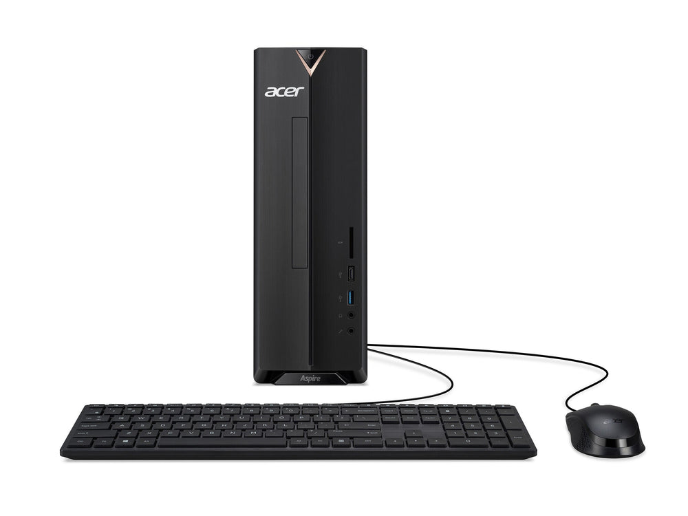 Windows 11 Home 64-bit. Intel Pentium Silver N6005 (4MB Cache, 2GHz). 8GB DDR4-SDRAM & 256GB SSD. The 8L space-saving Aspire XC encases hardware for everyday effective multitasking and entertainment. Snap between tasks or programs effortlessly with the latest Intel® Processors and NVIDIA® Graphics. The Aspire XC; making everyday computing exciting.. Compact. The 8L space-saving Aspire XC sits compactly in your workspace, housing your everyday multitasking needs and ready to answer your call.. Performance. Snap between tasks and programs with the latest 12th Gen Intel® Core™ CPU and DDR4 3200 MHz RAM1 for a performance boost.. Intel® Power. With the 12th gen Intel® Core™ i7 Processor1, apps and graphics load faster and simultaneously run multiple tasks without lag.. Faster Access. Videos and presentations are all subject to a smooth and fast experience with high-performance, low-power DDR4 3200 MHz RAM.1. Smooth. Accelerate your PC experience and upgrade your performance with NVIDIA® GeForce® GT 1030 Graphics,1 optimized to drive your daily gaming and entertainment needs.. Storage. High speeds and capacity storage are provided by 1TB SSD1 and 2TB HDD,1 enabling you to keep your media and memories in bulk. Additionally, a slim type optical drive enables further storage.. Connectivity. Wi-Fi 6E keeps your connection stable, giving you uninterrupted streaming. Further connectivity options include Bluetooth® 5.2,1 a USB 3.2 Type-C— which supports charging and high-speed data transfers—and an SD card reader.1. Audio. Featuring integrated high-definition 5.1 channel surround sound optimized for home theatres and entertainment.. Processor. Number of processors installed. 1. Processor cache type. Smart Cache. Processor cache. 4 MB. Processor frequency. 2 GHz. Processor threads. 4. Processor cores. 4. Processor model. N6005. Processor family. Intel® Pentium® Silver. Processor manufacturer. Intel. Memory. Memory slots. 2x DIMM. Internal memory type. DDR4-SDRAM. Maximum internal memory. 16 GB. Internal memory. 8 GB. Storage. Card reader integrated. Yes. SSD capacity. 256 GB. Number of SSDs installed. 1. Total SSDs capacity. 256 GB. Storage media. SSD. Optical drive type. No. Total storage capacity. 256 GB. Graphics. On-board graphics card model. Intel® UHD Graphics. On-board graphics card family. Intel® UHD Graphics. On-board GPU manufacturer. Intel. Discrete graphics card model. Not available. On-board graphics card. Yes. Discrete graphics card. No. Network. Bluetooth version. 5.0. Bluetooth. Yes. Wi-Fi standards. 802.11a, 802.11b, 802.11g, Wi-Fi 4 (802.11n), Wi-Fi 5 (802.11ac). Top Wi-Fi standard. Wi-Fi 5 (802.11ac). Wi-Fi. Yes. Ethernet LAN data rates. 10,100,1000 Mbit/s. Ethernet LAN. Yes. Ports & interfaces. Line-out. Yes. Line-in. Yes. Ethernet LAN (RJ-45) ports. 1. HDMI ports quantity. 1. VGA (D-Sub) ports quantity. 1. USB 3.2 Gen 1 (3.1 Gen 1) Type-C ports quantity. 1. USB 3.2 Gen 1 (3.1 Gen 1) Type-A ports quantity. 1. USB 2.0 ports quantity. 4. Expansion slots. PCI Express x16 slots. 1. Design. Country of origin. China. Product colour. Black. Placement supported. Vertical. Chassis type. Desktop. Performance. Built-in speaker(s). No. Product type. PC. Software. Operating system architecture. 64-bit. Operating system installed. Windows 11 Home. Processor special features. CPU configuration (max). 1. Power. Power supply. 65 W. Weight & dimensions. Package weight. 4.65 kg. Package height. 370 mm. Package depth. 495 mm. Package width. 170 mm. Height. 295 mm. Depth. 330 mm. Width. 100 mm. Packaging content. Cables included. AC. Keyboard layout. QWERTY. Keyboard included. Yes. Keyboard connectivity. Wireless. Mouse included. Yes. Mouse connectivity. Wireless. Display included. No. General. Product family. Aspire. Product series. XC