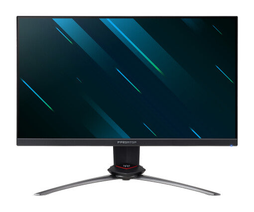 Acer Predator UM.KX3EE.P08. Display diagonal: 62.2 cm (24.5"), 1920 x 1080 pixels, Full HD, IPS. Response time: 2 ms. Native aspect ratio: 16:9. Viewing angle, horizontal: 178°. Viewing angle, vertical: 178°. Built-in speaker(s). VESA mounting. Height adjustment. THE MORE, THE BETTER. The 27" visual goliath packs a fierce 4K punch, leaving you with a perfect screen size for plenty of game time fun.. 4K MAX RESOLUTION. Unrelenting perfection. It lives within every 4K screen, eager for the chance to push image quality beyond what’s expected. For absolute speed, choose from FHD to WQHD displays as well. THE RIGHT MODE. Using GameView, there are three game modes to choose from: action, racing and sports. Use the default profile or customise your own to fit your preferences.. Display. Display number of colours. 16.78 million colours. Viewing angle, vertical. 178°. Viewing angle, horizontal. 178°. Maximum refresh rate. 120 Hz. Contrast ratio (dynamic). 100000000:1. Contrast ratio (typical). 1000:1. Aspect ratio. 16:9. Supported video modes. 1080p. Supported graphics resolutions. 1920 x 1080 (HD 1080). Screen shape. Flat. Response time. 2 ms. Display brightness (typical). 400 cd/m². Backlight type. LED. Panel type. IPS. HD type. Full HD. Touchscreen. No. Display technology. LCD. Native aspect ratio. 16:9. Display resolution. 1920 x 1080 pixels. Display diagonal. 62.2 cm (24.5"). Performance. NVIDIA G-SYNC. Yes. Multimedia. Built-in camera. No. RMS rated power. 8 W. Number of speakers. 2. Built-in speaker(s). Yes. Design. Product colour. Black. Market positioning. Gaming. Ports & interfaces. DisplayPort version. 1.2a. DisplayPorts quantity. 1. HDMI ports quantity. 2. HDMI. Yes. USB Type-A downstream ports quantity. 4. Number of upstream ports. 1. Ergonomics. Tilt angle range. -5 - 25°. Tilt adjustment. Yes. Swivel angle range. 0 - 20°. Swivelling. Yes. Adjustable height (max). 11.5 cm. Height adjustment. Yes. Panel mounting interface. 100 x 100 mm. VESA mounting. Yes. Power. Power consumption (off). 0.25 W. Power consumption (standby). 0.45 W. Power consumption (typical). 17.4 W. Weight & dimensions. Weight (with stand). 5.3 kg. Height (with stand). 513 mm. Depth (with stand). 236 mm. Width (with stand). 558 mm. Packaging content. Cables included. AC, HDMI, USB. Sustainability. Sustainability certificates. ENERGY STAR. General. Product family. Predator. Other features. TV tuner integrated. No. On/off switch. Yes. Logistics data. Harmonized System (HS) code. 85285210. EU Energy Label. EU Product Fiche