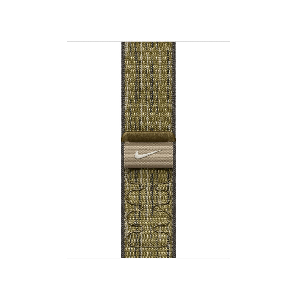 Band. Compatible device type: Smartwatch Apple. Material: Nylon. Green, Grey. 1 pc(s). The Nike Sport Loop has been redesigned to use excess yarn from previous seasons to create a soft, breathable and lightweight strap with a bold pattern. The hook-and-loop fastener and a woven pull tab featuring the Nike Swoosh makes it easy to adjust on the go. The double-layer nylon weave has dense loops on the skin side that provide soft cushioning while allowing moisture to escape.. The Nike Sport Loop contains at least 68% excess yarn from previous seasons, saving over three tonnes of primary yarn.. Features. Clasp type. Hook-and-loop clasp. Band size. One Size. Material. Nylon. Compatibility. Apple Watch Models38mm40mm41mm. Brand compatibility. Apple. Product colour. Green, Grey. Compatible device type. Smartwatch. Product type. Band. Packaging content. Quantity per pack. 1 pc(s)