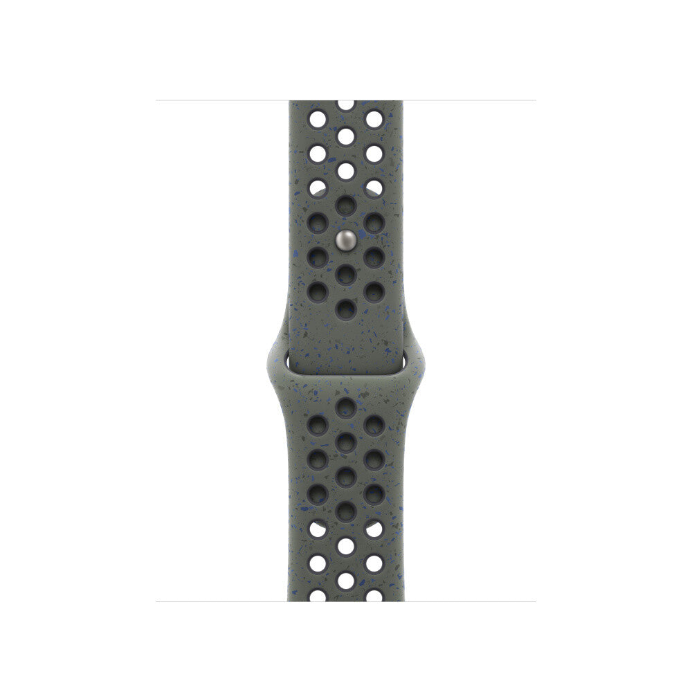 Band. Compatible device type: Smartwatch Apple. Material: Aluminium, Fluoroelastomer. Khaki. 1 pc(s). Made with compression-moulded perforations for breathability, the Nike Sport Band is durable and strong, yet surprisingly soft. It features colourful flakes that create a randomised pattern, making each strap completely unique. The smooth, dense material drapes elegantly across your wrist and feels comfortable next to your skin. A new aluminium pin-and-tuck closure gives the pin a fresh matt finish.. This strap contains at least 32% recycled fluoroelastomer, with each flake containing at least 66% recycled fluoroelastomer.. Features. Band size. M/L. Buckle material. Aluminium. Material. Aluminium, Fluoroelastomer. Compatibility. Apple Watch 38 mm, 40 mm, 41 mm. Brand compatibility. Apple. Product colour. Khaki. Compatible device type. Smartwatch. Product type. Band. Weight & dimensions. Wrist size range. 150 - 200 mm. Packaging content. Quantity per pack. 1 pc(s)