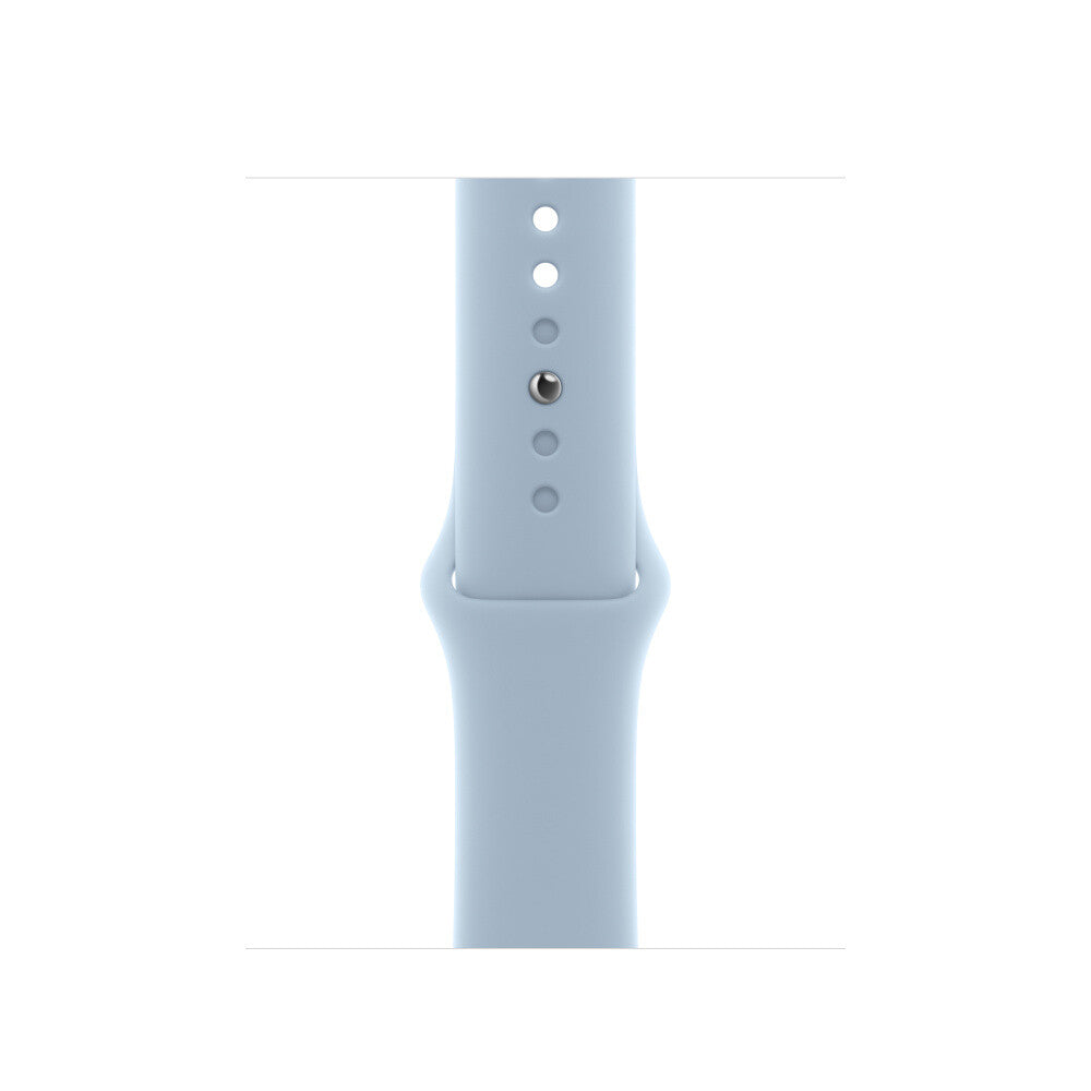 Band. Compatible device type: Smartwatch Apple. Material: Fluoroelastomer. Light Blue. 1 pc(s). Made from a custom high-performance fluoroelastomer, the Sport Band is durable and strong, yet surprisingly soft. The smooth, dense material drapes elegantly across your wrist and feels comfortable next to your skin. An innovative pin-and-tuck closure ensures a clean fit.. Features. Band size. S/M. Colour name. Light Blue. Material. Fluoroelastomer. Compatibility. Apple Watch 38mm, 40mm, 41mm. Brand compatibility. Apple. Product colour. Light Blue. Compatible device type. Smartwatch. Product type. Band. Weight & dimensions. Wrist size range. 130 - 180 mm. Weight. 74 g. Height. 12.5 mm. Depth. 237 mm. Width. 76 mm. Packaging content. Quantity per pack. 1 pc(s)