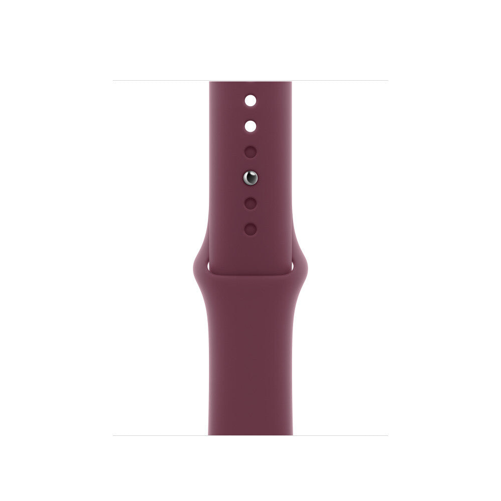 Band. Compatible device type: Smartwatch Apple. Material: Fluoroelastomer. Berry. 1 pc(s). Made from a custom high-performance fluoroelastomer, the Sport Band is durable and strong, yet surprisingly soft. The smooth, dense material drapes elegantly across your wrist and feels comfortable next to your skin. An innovative pin-and-tuck closure ensures a clean fit.. Features. Band size. S/M. Material. Fluoroelastomer. Compatibility. Apple Watch 38 mm, 40 mm, 41 mm. Brand compatibility. Apple. Product colour. Berry. Compatible device type. Smartwatch. Product type. Band. Weight & dimensions. Wrist size range. 130 - 180 mm. Packaging content. Quantity per pack. 1 pc(s)