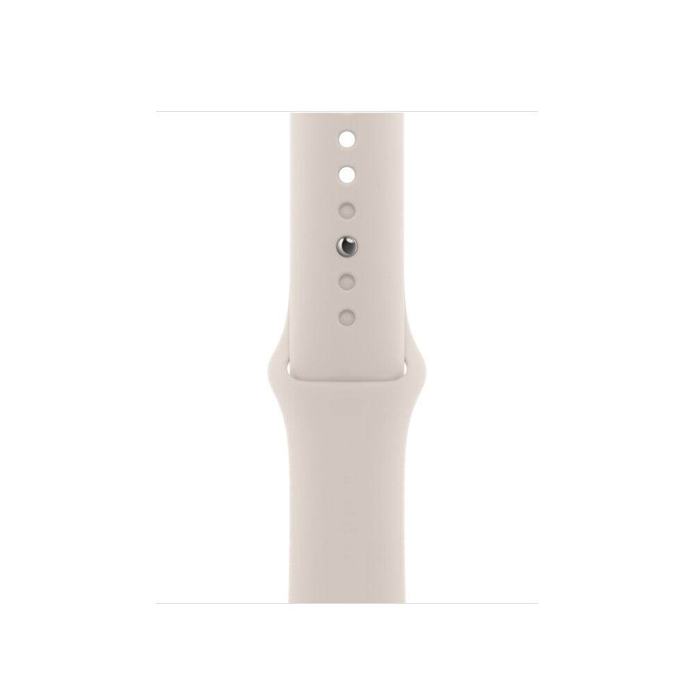 Band. Compatible device type: Smartwatch Apple. Material: Fluoroelastomer. White. 1 pc(s). Made from a custom high-performance fluoroelastomer, the Sport Band is durable and strong, yet surprisingly soft. The smooth, dense material drapes elegantly across your wrist and feels comfortable next to your skin. An innovative pin-and-tuck closure ensures a clean fit.. Features. Band size. M/L. Material. Fluoroelastomer. Compatibility. Apple Watch 38 mm, 40 mm, 41 mm. Brand compatibility. Apple. Product colour. White. Compatible device type. Smartwatch. Product type. Band. Weight & dimensions. Wrist size range. 150 - 200 mm. Packaging content. Quantity per pack. 1 pc(s)