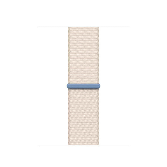 Band. Compatible device type: Smartwatch Apple. Material: Nylon, Recycled polyester, Spandex. 1 pc(s). Soft, breathable, and lightweight, the Sport Loop features a hook-and-loop fastener for quick and easy adjustment. The double-layer nylon weave has dense loops on the skin side that provide soft cushioning while allowing moisture to escape. This weave is made with 82% recycled yarns, some of which contain material from discarded fishing nets.. This band is carbon neutral. The Sport Loop contains 45% recycled content by weight, 100% of manufacturing electricity is covered by clean energy, and 50% or more of all carbon neutral Apple Watch products are shipped without airplanes.. Features. Band size. One Size. Colour name. Starlight. Material. Nylon, Recycled polyester, Spandex. Compatibility. Watch. Brand compatibility. Apple. Compatible device type. Smartwatch. Product type. Band. Weight & dimensions. Wrist size range. 130 - 200 mm. Packaging content. Quantity per pack. 1 pc(s)
