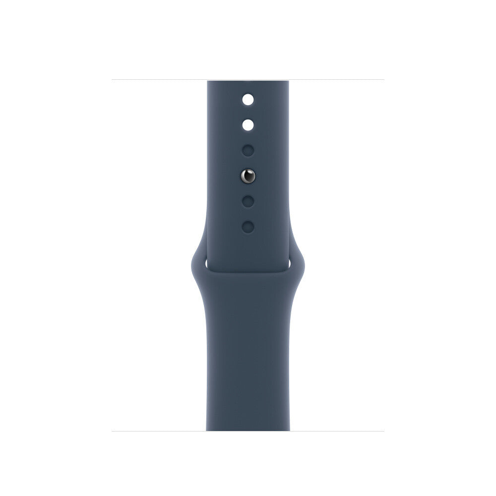 Band. Compatible device type: Smartwatch Apple. Material: Fluoroelastomer. Blue. 1 pc(s). Made from a custom high-performance fluoroelastomer, the Sport Band is durable and strong, yet surprisingly soft. The smooth, dense material drapes elegantly across your wrist and feels comfortable next to your skin. An innovative pin-and-tuck closure ensures a clean fit.. Features. Band size. M/L. Material. Fluoroelastomer. Compatibility. Apple Watch 38 mm, 40 mm, 41 mm. Brand compatibility. Apple. Product colour. Blue. Compatible device type. Smartwatch. Product type. Band. Weight & dimensions. Wrist size range. 150 - 200 mm. Packaging content. Quantity per pack. 1 pc(s)