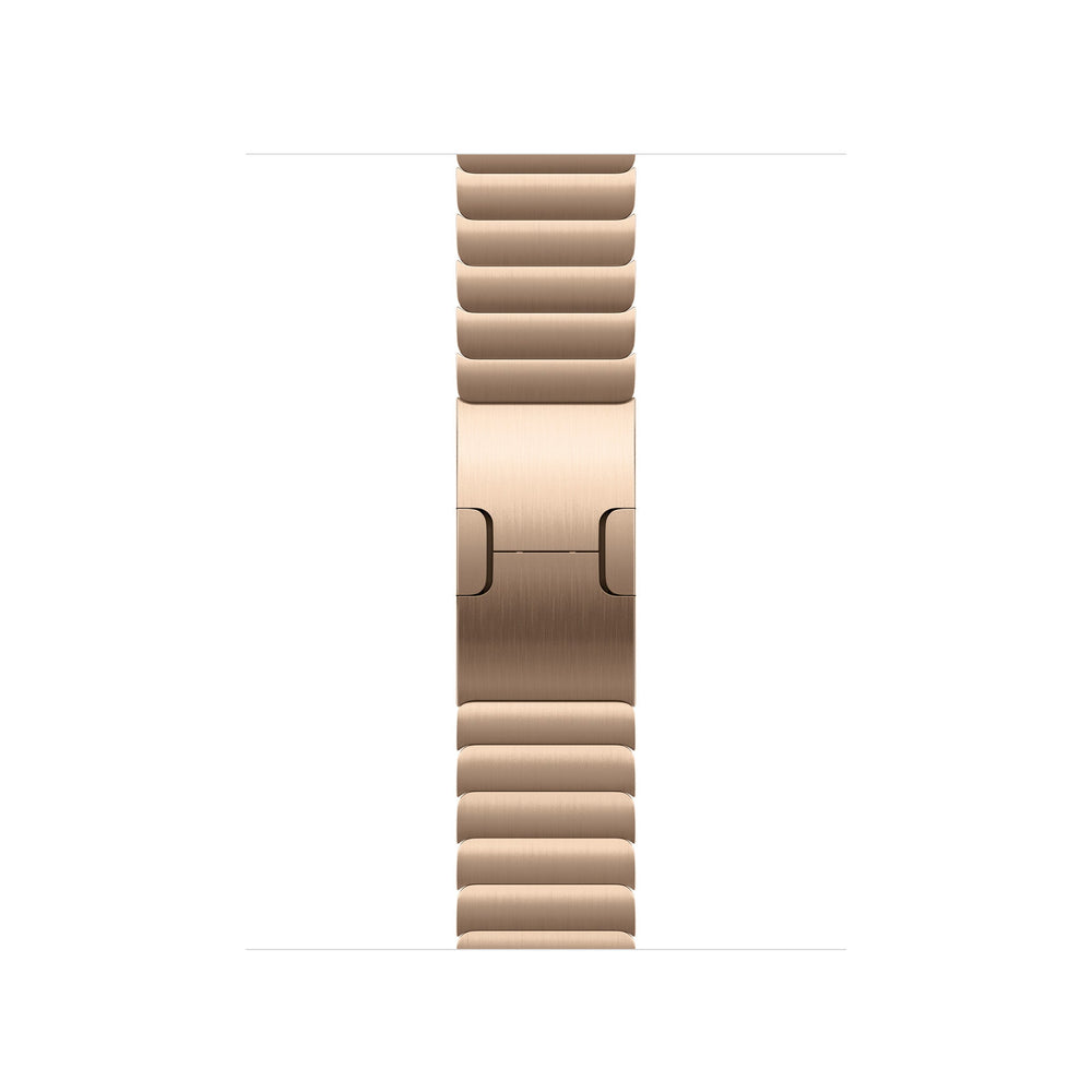 Band. Compatible device type: Smartwatch Apple. Material: Stainless steel. Gold. 1 pc(s). Crafted from 316L stainless steel alloy, the Link Bracelet has more than 100 components. The machining process is so precise, it takes nearly nine hours to cut the links for a single strap. The custom butterfly closure folds neatly within the bracelet. And several links feature a simple release button, so you can add and remove links without any special tools.. Features. Clasp type. Butterfly clasp. Band size. One Size. Material. Stainless steel. Compatibility. Apple Watch Models38mm40mm41mm42mm. Brand compatibility. Apple. Product colour. Gold. Compatible device type. Smartwatch. Product type. Band. Packaging content. Quantity per pack. 1 pc(s)