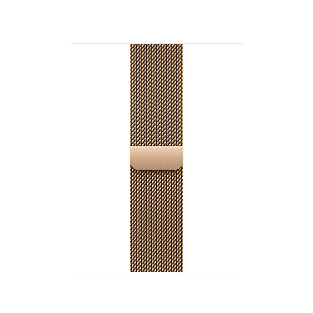 Band. Compatible device type: Smartwatch Apple. Material: Stainless steel. Gold. 1 pc(s). A modern interpretation of a design developed in Milan at the end of the 19th century. Woven on specialised Italian machines, the smooth stainless steel mesh wraps fluidly around your wrist. And because it’s fully magnetic, the Milanese Loop is infinitely adjustable, ensuring a perfect fit. An additional physical vapour deposition (PVD) layer gives the stainless steel its distinctive finish.. This strap is carbon neutral. The Milanese Loop contains 65% recycled content by weight, 100% of manufacturing electricity is covered by clean energy, and 50% or less of all carbon-neutral Apple Watch products are shipped by air.º. Features. Clasp type. Milanese closure. Band size. One Size. Material. Stainless steel. Compatibility. Apple Watch Models38mm40mm41mm42mm. Brand compatibility. Apple. Product colour. Gold. Compatible device type. Smartwatch. Product type. Band. Packaging content. Quantity per pack. 1 pc(s)