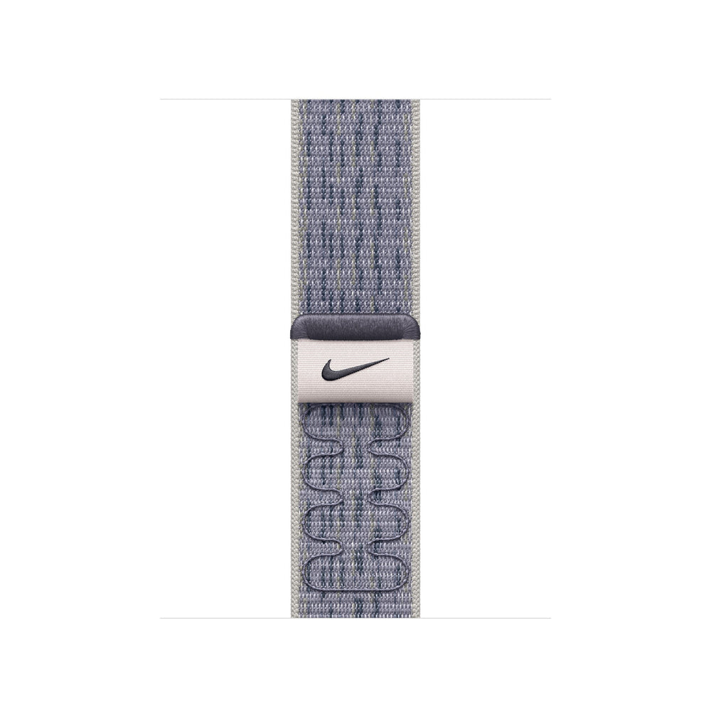 Band. Compatible device type: Smartwatch Apple. Material: Nylon. Blue, Grey. 1 pc(s). The Nike Sport Loop has been redesigned to use excess yarn from previous seasons to create a soft, breathable and lightweight strap with a bold pattern. The hook-and-loop fastener and a woven pull tab featuring the Nike Swoosh makes it easy to adjust on the go. The double-layer nylon weave has dense loops on the skin side that provide soft cushioning while allowing moisture to escape.. The Nike Sport Loop contains at least 68% excess yarn from previous seasons, saving over three tonnes of primary yarn.. Features. Clasp type. Hook-and-loop clasp. Band size. One Size. Material. Nylon. Compatibility. Apple Watch Models38mm40mm41mm42mm. Brand compatibility. Apple. Product colour. Blue, Grey. Compatible device type. Smartwatch. Product type. Band. Packaging content. Quantity per pack. 1 pc(s)