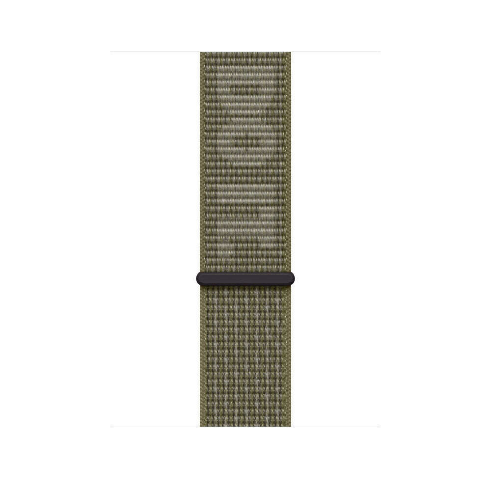 Band. Compatible device type: Smartwatch Apple. Material: Nylon. Green, White. 1 pc(s). Breathable and lightweight, the Nike Sport Loop is designed for fitness. The iconic Nike “Just Do It” logo is woven into the soft nylon using an innovative technique. A hook-and-loop fastener makes for quick and easy adjustment, and dense loops on the skin side provide soft cushioning while allowing moisture to escape. On the reverse side, the attachment loops are securely anchored for superior durability.. Features. Colour name. Sequoia/Pure Platinum. Material. Nylon. Compatibility. Watch 42mmWatch 44mmWatch 45mmWatch 49mm. Brand compatibility. Apple. Product colour. Green, White. Compatible device type. Smartwatch. Product type. Band. Weight & dimensions. Wrist size range. 145 - 220 mm. Packaging content. Quantity per pack. 1 pc(s)