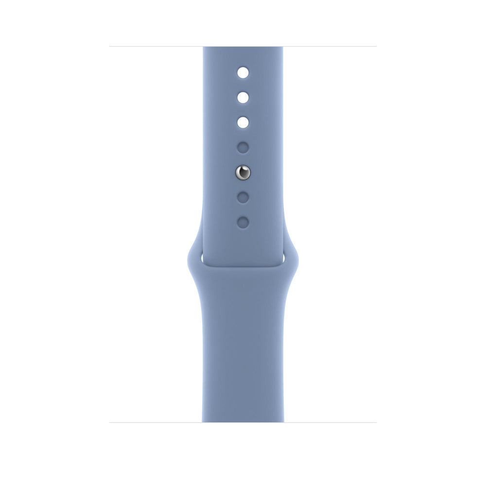 Band. Compatible device type: Smartwatch Apple. Material: Fluoroelastomer. Blue. 1 pc(s). Made from a custom high-performance fluoroelastomer, the Sport Band is durable and strong, yet surprisingly soft. The smooth, dense material drapes elegantly across your wrist and feels comfortable next to your skin. An innovative pin-and-tuck closure ensures a clean fit.. Features. Colour name. Winter Blue. Buckle colour. Stainless steel. Material. Fluoroelastomer. Compatibility. Watch 42mm, 44mm, 45mm, 49mm. Brand compatibility. Apple. Product colour. Blue. Compatible device type. Smartwatch. Product type. Band. Packaging content. Quantity per pack. 1 pc(s)