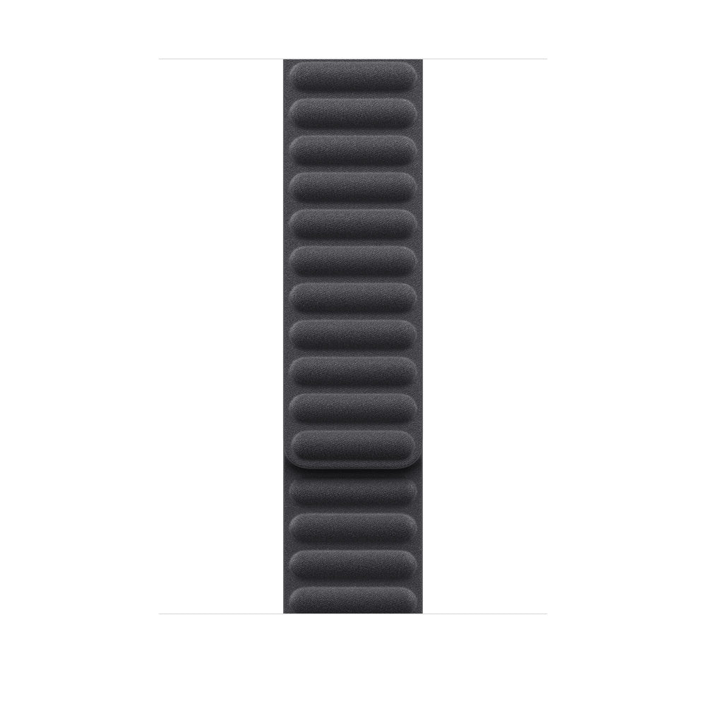 Band. Compatible device type: Smartwatch Apple. Material: Polyester. Black. 1 pc(s). The Magnetic Link with FineWoven elegantly wraps around the wrist and magically attaches with moulded magnets that gently flex to help maintain security and comfort throughout the day.. Made from a durable micro-twill, the FineWoven material has a soft, suede-like feel. It was also designed with the earth in mind — made from 68% post-consumer recycled content and significantly reducing carbon emissions compared to leather.. Features. Clasp type. Magnetic clasp. Band size. M/L. Material. Polyester. Compatibility. Apple Watch Models44mm45mm46mm49mm. Brand compatibility. Apple. Product colour. Black. Compatible device type. Smartwatch. Product type. Band. Weight & dimensions. Wrist size range. 165 - 205 mm. Packaging content. Quantity per pack. 1 pc(s)