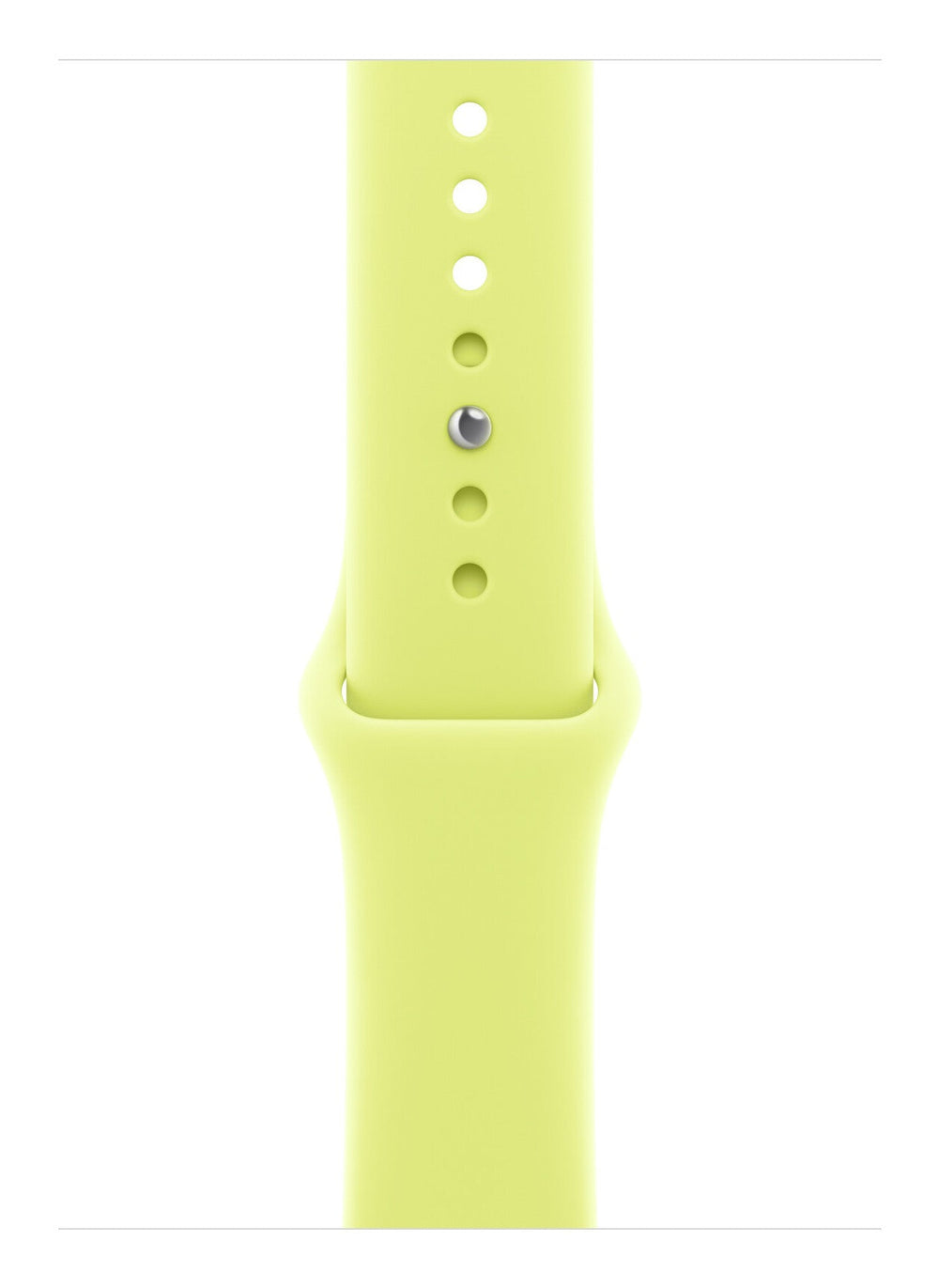 Band. Compatible device type: Smartwatch Apple. Material: Fluoroelastomer. Yellow. 1 pc(s). Made from a custom high-performance fluoroelastomer, the Sport Band is durable and strong, yet surprisingly soft. The smooth, dense material drapes elegantly across your wrist and feels comfortable next to your skin. An innovative pin-and-tuck closure ensures a clean fit.. Features. Clasp type. Buckle clasp. Band size. S/M. Material. Fluoroelastomer. Compatibility. Apple Watch Models44mm45mm46mm49mm. Brand compatibility. Apple. Product colour. Yellow. Compatible device type. Smartwatch. Product type. Band. Weight & dimensions. Wrist size range. 140 - 190 mm. Width. 46 mm. Packaging content. Quantity per pack. 1 pc(s)