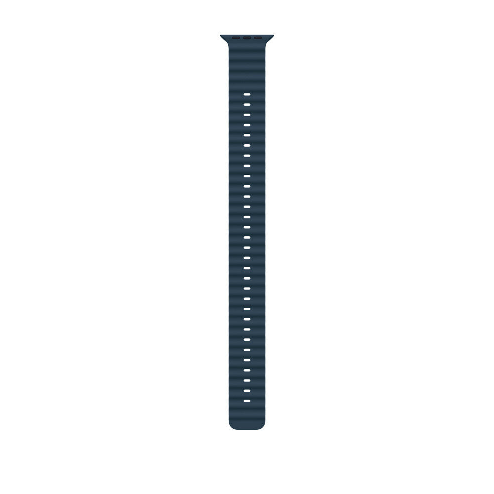 Band. Compatible device type: Smartwatch Apple. Material: Fluoroelastomer, Titanium. Blue. 1 pc(s). Made from the same high-performance elastomer as the Ocean Band, this strap extension lengthens the 49mm Ocean Band by an additional 50 millimetres — perfect if you need extra length to wear the strap over your wetsuit.. The extension comes with an extra adjustable, corrosion-resistant titanium loop, which you can place in any tube to tuck the excess strap into. This extension must be used with the standard Ocean Band.. Features. Material. Fluoroelastomer, Titanium. Compatibility. Apple Watch 44mm, 45mm, 49mm. Brand compatibility. Apple. Product colour. Blue. Compatible device type. Smartwatch. Product type. Band. Packaging content. Quantity per pack. 1 pc(s)