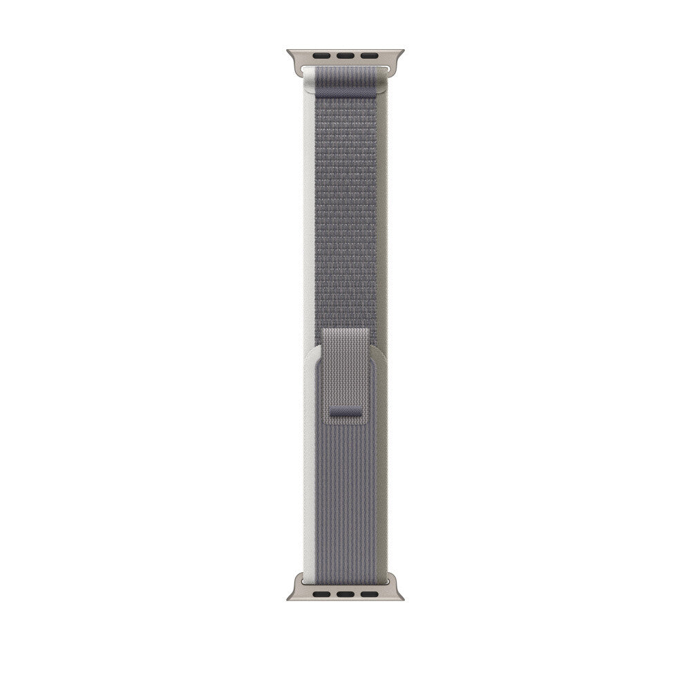 Band. Compatible device type: Smartwatch Apple. Material: Nylon, Recycled polyester, Titanium, Spandex. Green, Grey. 1 pc(s). The ultra-thin, lightweight Trail Loop is made from a nylon weave creating a soft strap with increased elasticity for a comfortable fit. The strap is infinitely adjustable with a convenient pull tab for quick adjustments on the go.. This strap is carbon neutral. The Trail Loop contains 32% recycled content by weight, 100% of manufacturing electricity is covered by clean energy, and 50% or more of all carbon-neutral Apple Watch products are shipped without aeroplanes.. Features. Band size. S/M. Material. Nylon, Recycled polyester, Titanium, Spandex. Compatibility. Apple Watch 44mm, 45mm, 49mm. Brand compatibility. Apple. Product colour. Green, Grey. Compatible device type. Smartwatch. Product type. Band. Weight & dimensions. Wrist size range. 130 - 180 mm. Packaging content. Quantity per pack. 1 pc(s)