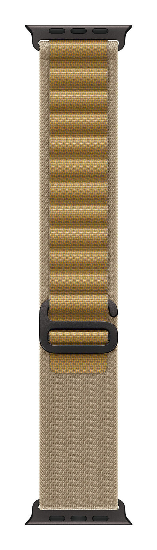 Band. Compatible device type: Smartwatch Apple. Material: Polyester, Spandex, Titanium. Tan. 1 pc(s). The rugged Alpine Loop is made from two textile layers woven together into one continuous piece without stitching. High-strength yarns reinforce the top loops, and the corrosion-resistant titanium G-hook slides easily into the loops for secure fit.. This strap is carbon neutral. The Alpine Loop contains 43% recycled content by weight, 100% of manufacturing electricity is covered by clean energy, and 50% or more of all carbon-neutral Apple Watch products are shipped without aeroplanes.º. Features. Band size. L. Protection features. Corrosion resistant. Material. Polyester, Spandex, Titanium. Compatibility. Apple Watch Models44mm45mm46mm49mm. Brand compatibility. Apple. Product colour. Tan. Compatible device type. Smartwatch. Product type. Band. Weight & dimensions. Wrist size range. 165 - 210 mm. Packaging content. Quantity per pack. 1 pc(s)
