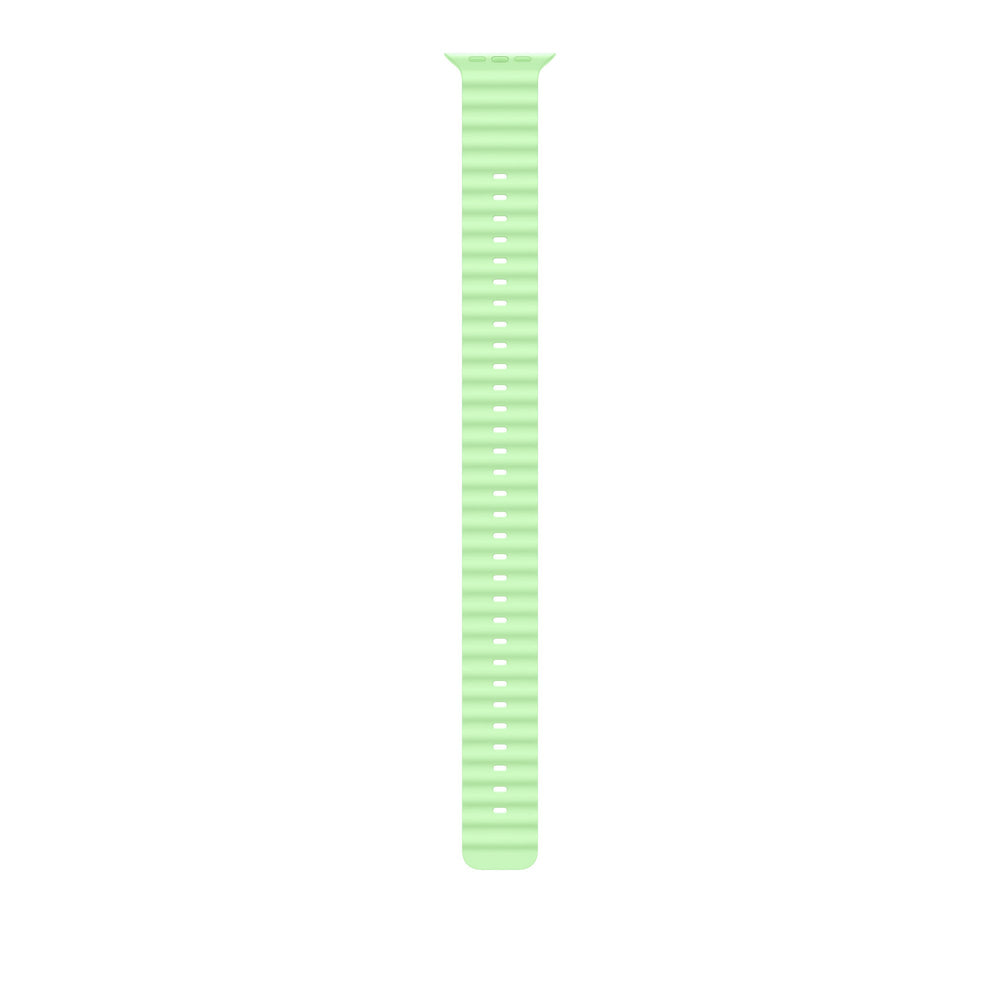 Band. Compatible device type: Smartwatch Apple. Material: Fluoroelastomer, Titanium. Green. 1 pc(s). Made from the same high-performance elastomer as the Ocean Band, this band extension lengthens the 49mm Ocean Band by an additional 50 millimeters — perfect if you need extra length to wear the band over your wetsuit.. Features. Clasp type. Hook-and-loop clasp. Band size. One Size. Colour name. Green Ocean Band. Material. Fluoroelastomer, Titanium. Compatibility. Apple Watch: 44mm, 45mm, 46mm, 49mm. Brand compatibility. Apple. Product colour. Green. Compatible device type. Smartwatch. Product type. Band. Weight & dimensions. Package weight. 86 g. Package height. 12 mm. Package depth. 292 mm. Package width. 74 mm. Wrist size range. 130 - 250 mm. Width. 49 mm. Packaging content. Quantity per pack. 1 pc(s)