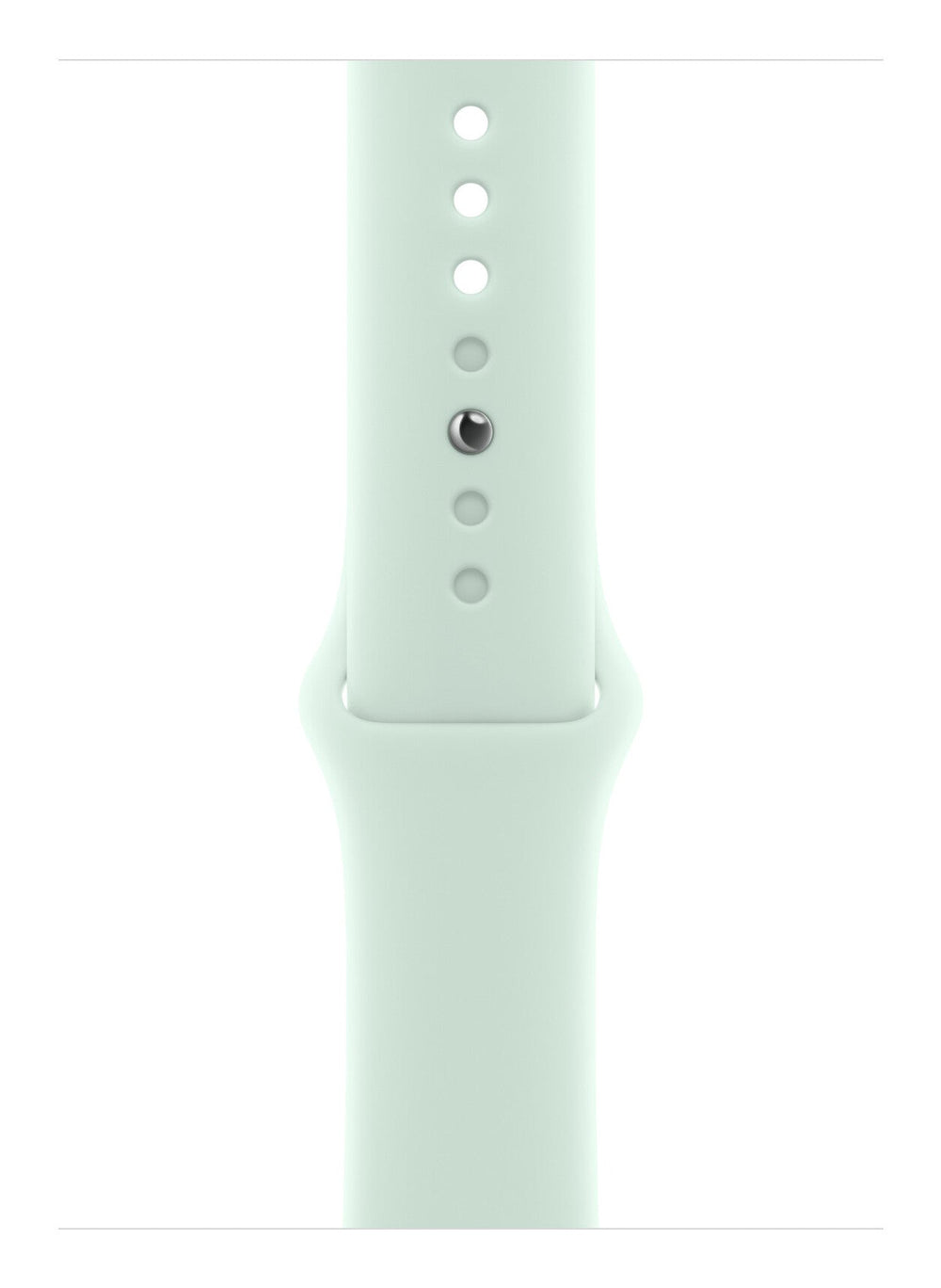 Band. Compatible device type: Smartwatch Apple. Material: Fluoroelastomer. Aquamarine. 1 pc(s). Made from a custom high-performance fluoroelastomer, the Sport Band is durable and strong, yet surprisingly soft. The smooth, dense material drapes elegantly across your wrist and feels comfortable next to your skin. An innovative pin-and-tuck closure ensures a clean fit.. Features. Band size. M/L. Material. Fluoroelastomer. Compatibility. Apple Watch Models44mm45mm46mm49mm. Brand compatibility. Apple. Product colour. Aquamarine. Compatible device type. Smartwatch. Product type. Band. Weight & dimensions. Package weight. 74 g. Package height. 12.5 mm. Package depth. 237 mm. Package width. 76 mm. Wrist size range. 160 - 200 mm. Packaging content. Quantity per pack. 1 pc(s)