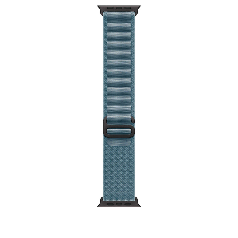 Band. Compatible device type: Smartwatch Apple. Material: Titanium, Polyester, Spandex. Blue. 1 pc(s). The rugged Alpine Loop is made from two textile layers woven together into one continuous piece without stitching. High-strength yarns reinforce the top loops, and the corrosion-resistant titanium G-hook slides easily into the loops for secure fit.. Features. Clasp type. Hook-and-loop clasp. Band size. L. Material. Titanium, Polyester, Spandex. Compatibility. Apple Watch Models44mm45mm46mm49mm. Brand compatibility. Apple. Product colour. Blue. Compatible device type. Smartwatch. Product type. Band. Weight & dimensions. Package weight. 66 g. Package height. 12.5 mm. Package depth. 211 mm. Package width. 115 mm. Wrist size range. 165 - 210 mm. Packaging content. Quantity per pack. 1 pc(s)