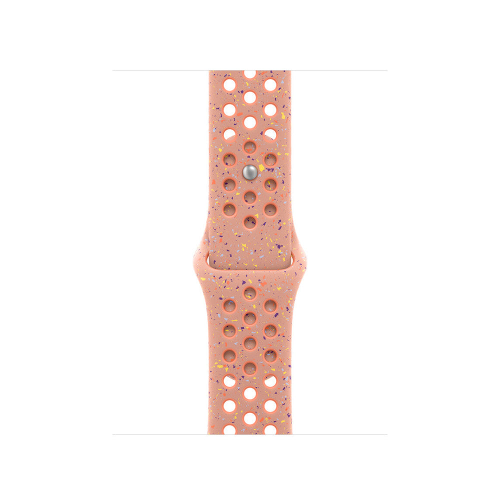 Band. Compatible device type: Smartwatch Apple. Material: Aluminium, Fluoroelastomer. Pink. 1 pc(s). Made with compression-molded perforations for breathability, the Nike Sport Band is durable and strong, yet surprisingly soft. It features colorful flakes that create a randomized pattern, making each band unique. The smooth, dense material drapes elegantly across your wrist and feels comfortable next to your skin. An aluminum pin-and-tuck closure — carefully etched with the Run Swoosh logo — gives the pin a fresh matte finish.. Features. Band size. M/L. Material. Aluminium, Fluoroelastomer. Compatibility. Apple Watch Models38mm40mm41mm. Brand compatibility. Apple. Product colour. Pink. Compatible device type. Smartwatch. Product type. Band. Weight & dimensions. Package weight. 74 g. Package height. 12.5 mm. Package depth. 237 mm. Package width. 76 mm. Wrist size range. 150 - 200 mm. Packaging content. Quantity per pack. 1 pc(s)
