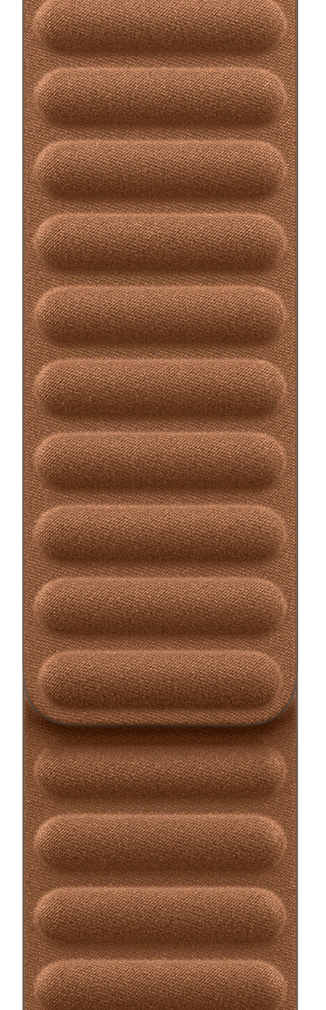 Band. Compatible device type: Smartwatch Apple. Material: Polyester. Caramel. 1 pc(s). Made from durable micro‑twill, the Magnetic Link with FineWoven has a soft, suede‑like feel. It wraps elegantly around the wrist and magically attaches with moulded magnets that gently flex to help maintain security and comfort throughout the day.. Features. Clasp type. Magnetic clasp. Band size. M/L. Material. Polyester. Compatibility. Watch 38 mm/40 mm/41 mm/42 mm. Brand compatibility. Apple. Product colour. Caramel. Compatible device type. Smartwatch. Product type. Band. Weight & dimensions. Wrist size range. 140 - 180 mm. Packaging content. Quantity per pack. 1 pc(s)