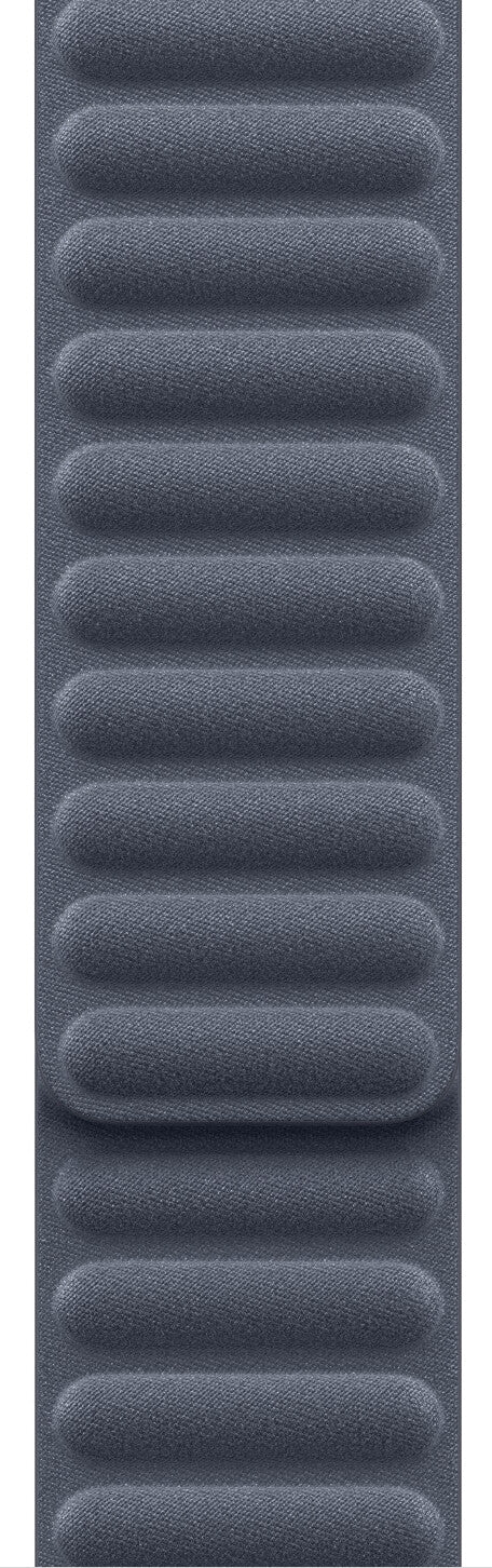 Band. Compatible device type: Smartwatch Apple. Material: Polyester. Navy. 1 pc(s). Made from durable micro‑twill, the Magnetic Link with FineWoven has a soft, suede‑like feel. It wraps elegantly around the wrist and magically attaches with moulded magnets that gently flex to help maintain security and comfort throughout the day.. Features. Clasp type. Magnetic clasp. Band size. M/L. Material. Polyester. Compatibility. Watch 38 mm/40 mm/41 mm/42 mm. Brand compatibility. Apple. Product colour. Navy. Compatible device type. Smartwatch. Product type. Band. Weight & dimensions. Wrist size range. 140 - 180 mm. Packaging content. Quantity per pack. 1 pc(s)
