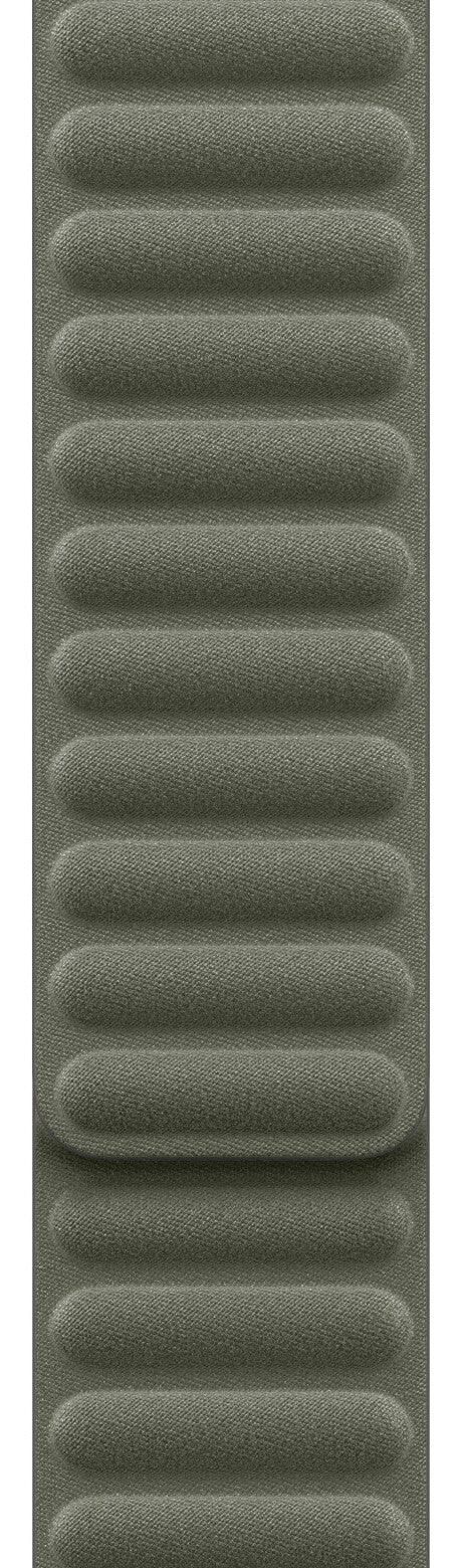 Band. Compatible device type: Smartwatch Apple. Material: Polyester. Grey, Sage. 1 pc(s). Made from durable micro‑twill, the Magnetic Link with FineWoven has a soft, suede‑like feel. It wraps elegantly around the wrist and magically attaches with moulded magnets that gently flex to help maintain security and comfort throughout the day.. Features. Clasp type. Magnetic clasp. Band size. M/L. Material. Polyester. Compatibility. Watch 44 mm/45 mm/46 mm/49 mm. Brand compatibility. Apple. Product colour. Grey, Sage. Compatible device type. Smartwatch. Product type. Band. Weight & dimensions. Wrist size range. 165 - 205 mm. Packaging content. Quantity per pack. 1 pc(s)