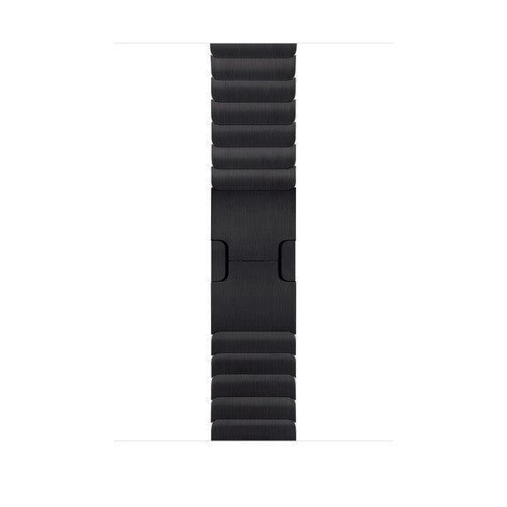 Band. Compatible device type: Smartwatch Apple. Material: Stainless steel. Black. 1 pc(s). Crafted from the same 316L stainless steel alloy as the case, the Link Bracelet has more than 100 components. The machining process is so precise, it takes nearly nine hours to cut the links for a single strap. The custom butterfly closure folds neatly within the bracelet. And several links feature a simple release button, so you can add and remove links without any special tools. An additional diamond-like carbon (DLC) layer gives the space black stainless steel its distinctive finish.. Features. Material. Stainless steel. Compatibility. Apple Watch 42mm, 44mm, 45mm. Brand compatibility. Apple. Product colour. Black. Compatible device type. Smartwatch. Product type. Band. Packaging content. Quantity per pack. 1 pc(s)