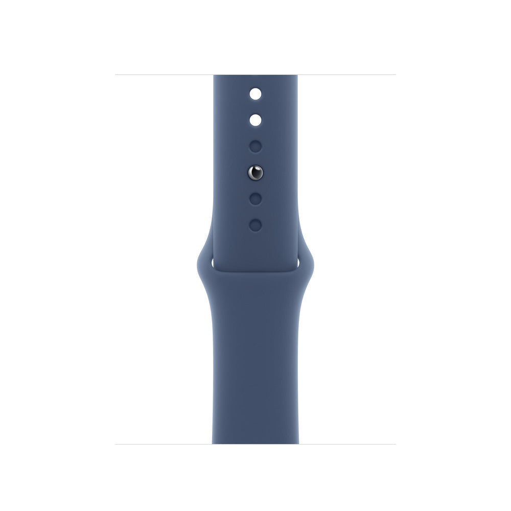Band. Compatible device type: Smartwatch Apple. Material: Fluoroelastomer. Blue. 1 pc(s). Made from a custom high-performance fluoroelastomer, the Sport Band is durable and strong, yet surprisingly soft. The smooth, dense material drapes elegantly across your wrist and feels comfortable next to your skin. An innovative pin-and-tuck closure ensures a clean fit.. Features. Band size. M/L. Material. Fluoroelastomer. Compatibility. Apple Watch Models 38mm, 40mm, 41mm. Brand compatibility. Apple. Product colour. Blue. Compatible device type. Smartwatch. Product type. Band. Weight & dimensions. Wrist size range. 150 - 200 mm. Packaging content. Quantity per pack. 1 pc(s)