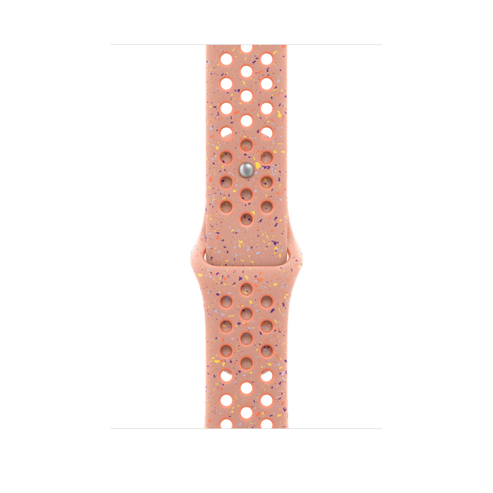 Band. Compatible device type: Smartwatch Apple. Material: Aluminium, Fluoroelastomer. Lightweight. Pink. 1 pc(s). Made with compression-molded perforations for breathability, the Nike Sport Band is durable and strong, yet surprisingly soft. It features colorful flakes that create a randomized pattern, making each band unique. The smooth, dense material drapes elegantly across your wrist and feels comfortable next to your skin. An aluminum pin-and-tuck closure — carefully etched with the Run Swoosh logo — gives the pin a fresh matte finish.. Features. Band size. S/M. Lightweight. Yes. Colour name. Alpenglow Pink. Material. Aluminium, Fluoroelastomer. Compatibility. Apple Watch: 44mm, 45mm, 46mm, 49mm. Brand compatibility. Apple. Product colour. Pink. Compatible device type. Smartwatch. Product type. Band. Weight & dimensions. Wrist size range. 140 - 190 mm. Width. 46 mm. Packaging content. Quantity per pack. 1 pc(s)