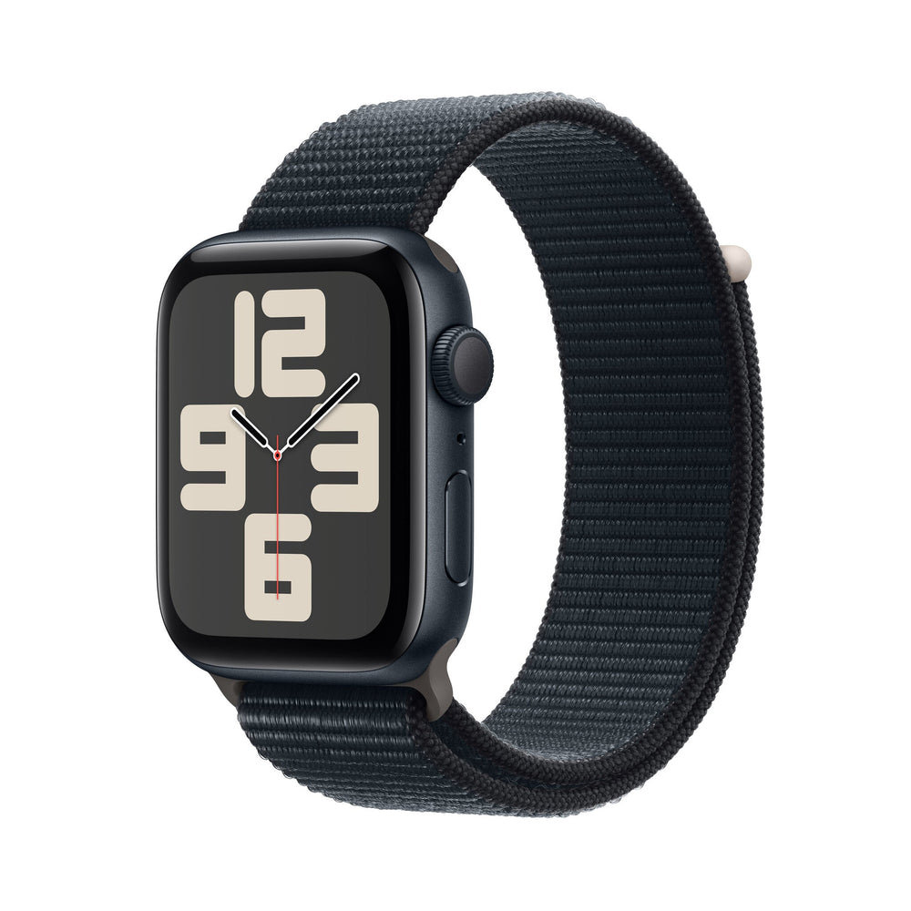Smartwatch Digital Touchscreen OLED. 368 x 448 pixels 1000 cd/m². Water resistant, Waterproof Waterproof up to: 50 m. Built-in microphone Built-in speaker(s). Heart rate monitor Accelerometer Gyroscope Activity tracker Apple Siri. GPS (satellite) GLONASS Galileo Quasi-Zenith Satellite System (QZSS). Wi-Fi Bluetooth 5.0 Near Field Communication (NFC). Built-in battery 18 h. A great deal to love.. Easy ways to stay connected. Motivating fitness metrics. Innovative health and safety features. And now with carbon neutral case and band combinations. Apple Watch SE offers totally lovable features at a feel‑good price.. Display. Watch glass type. Ion-X glass. Rounded display corners. Yes. Display brightness. 1000 cd/m². Display technology. OLED. Touchscreen. Yes. Display resolution. 368 x 448 pixels. Display type. Digital. Performance. Fall detection. Yes. Crash detection. Yes. Wireless chipset. W3. 64-bit computing. Yes. Processor cores. 2. Processor model. S8. Processor manufacturer. Apple. Flash memory. 32 GB. Operating system installed. watchOS 9. Mobile operating systems supported. iOS. FM radio. No. Built-in camera. No. Built-in speaker(s). Yes. Built-in microphone. Yes. Design. Waterproof up to. 50 m. Magnetic charging connector. Yes. Protection features. Water resistant, Waterproof. Removable strap. Yes. Back material. Nylon, Sapphire glass. Shape. Rectangular. Band colour. Black. Watch case material. Aluminium. Watch case colour. Black. Watch case size. 44 mm. Market positioning. Smartwatch. Features. Altimeter. Yes. Haptic feedback. Yes. Virtual assistant. Apple Siri. E-mail. Yes. Electronic compass. Yes. Audible alarm(s). Yes. Ambient light sensor. Yes. SOS alert function. Yes. Short Message Service (SMS). Yes. Activity tracker. Yes. Gyroscope. Yes. Accelerometer. Yes. Heart rate sensor type. Optical. Heart rate monitor. Yes. Network. Quasi-Zenith Satellite System (QZSS). Yes. Galileo. Yes. GLONASS. Yes. GPS (satellite). Yes. Mobile network connection. No. Ports & interfaces. Headphone connectivity. Bluetooth. Near Field Communication (NFC). Yes. Bluetooth version. 5.0. Bluetooth. Yes. Wi-Fi standards. 802.11b, 802.11g, Wi-Fi 4 (802.11n). Wi-Fi. Yes. USB port. No. Power. Wireless charging. Yes. Battery life (max). 18 h. Battery type. Built-in battery. General. Product family. Watch. Product series. SE (2nd generation). Weight & dimensions. Weight. 32.9 g. Thickness. 1.07 cm. Depth. 44 mm. Width. 38 mm. Packaging content. Cables included. USB Type-C. Sustainability. Doesn't contain. Arsenic, BFR, Beryllium, Mercury, PVC