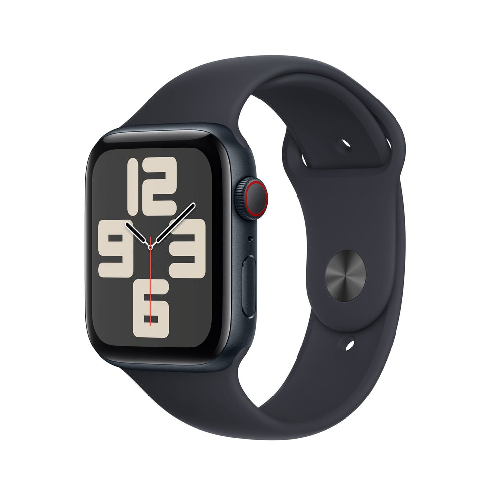Smartwatch Digital Touchscreen OLED. 368 x 448 pixels 1000 cd/m². Waterproof, Water resistant Waterproof up to: 50 m. Built-in microphone Built-in speaker(s). Heart rate monitor Accelerometer Gyroscope Activity tracker Apple Siri. 4G GPS (satellite) GLONASS Galileo Quasi-Zenith Satellite System (QZSS). Wi-Fi Bluetooth 5.0 Near Field Communication (NFC). Built-in battery 18 h. A great deal to love.. Easy ways to stay connected. Motivating fitness metrics. Innovative health and safety features. And now with carbon neutral case and band combinations. Apple Watch SE offers totally lovable features at a feel‑good price.. Display. Watch glass type. Ion-X glass. Rounded display corners. Yes. Display brightness. 1000 cd/m². Display technology. OLED. Touchscreen. Yes. Display resolution. 368 x 448 pixels. Display type. Digital. Performance. Fall detection. Yes. Crash detection. Yes. Wireless chipset. W3. 64-bit computing. Yes. Processor cores. 2. Processor model. S8. Processor manufacturer. Apple. Flash memory. 32 GB. Operating system installed. watchOS 9. Mobile operating systems supported. iOS. FM radio. No. Built-in camera. No. Built-in speaker(s). Yes. Built-in microphone. Yes. Design. Waterproof up to. 50 m. Magnetic charging connector. Yes. Protection features. Waterproof, Water resistant. Removable strap. Yes. Back material. Nylon, Sapphire glass. Shape. Rectangular. Band size. M/L. Band colour. Black. Watch case material. Aluminium. Watch case colour. Black. Watch case size. 44 mm. Market positioning. Smartwatch. Features. Altimeter. Yes. Haptic feedback. Yes. Virtual assistant. Apple Siri. E-mail. Yes. Electronic compass. Yes. Audible alarm(s). Yes. Ambient light sensor. Yes. SOS alert function. Yes. Short Message Service (SMS). Yes. Activity tracker. Yes. Gyroscope. Yes. Accelerometer. Yes. Heart rate sensor type. Optical. Heart rate monitor. Yes. Network. Quasi-Zenith Satellite System (QZSS). Yes. Galileo. Yes. GLONASS. Yes. GPS (satellite). Yes. Mobile network generation. 4G. Mobile network connection. Yes. Ports & interfaces. Headphone connectivity. Bluetooth. Near Field Communication (NFC). Yes. Bluetooth version. 5.0. Bluetooth. Yes. Wi-Fi standards. 802.11b, 802.11g, Wi-Fi 4 (802.11n). Wi-Fi. Yes. USB port. No. Power. Wireless charging. Yes. Battery life (max). 18 h. Battery type. Built-in battery. General. Product family. Watch. Product series. SE (2nd generation). Weight & dimensions. Weight. 33 g. Thickness. 1.07 cm. Depth. 44 mm. Width. 38 mm. Packaging content. Cables included. USB Type-C. Sustainability. Doesn't contain. PVC, Arsenic, BFR, Mercury, Beryllium