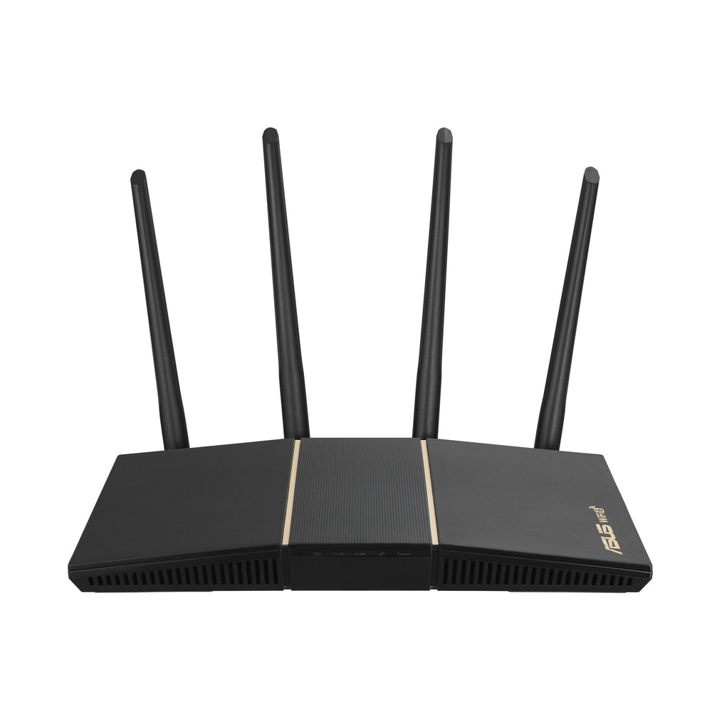 New-Gen WiFi Standard – Supporting 802.11ax WiFi standard for better efficiency and throughput. Ultra-fast WiFi Speed – RT-AX57 supports 1024-QAM for dramatically faster wireless connections. With a total networking speed of about 3000Mbps — 574 Mbps on the 2.4GHz band and 2402 Mbps on the 5GHz band. Increase Capacity and Efficiency – Supporting not only MU-MIMO but also OFDMA technique to efficiently allocate channels, communicating with multiple devices simultaneously. Protection for Your Home Network – Lifetime free AiProtection, powered by Trend Micro™, blocks internet security threats for all your connected smart devices. Better Partner with Mesh System – Compatible with ASUS AiMesh WiFi system for seamless whole-home coverage. Built for Smart Home. WiFi 6 (802.11ax) is engineered to cope with multiple devices, providing up to 4X greater network capacity and efficiency.. WiFi that Goes Further. WiFi 6 provides increased WiFi signal range and better coverage of up to 80% farther.. Faster WiFi. Smoother Usage.. With a total networking speed of 3,000Mbps— RT-AX57 is 1.5X faster than 802.11ac 2X2 dual-band routers*.. *The data compares speed of 2x2 WiFi 6 solution on 2.4GHz / 5GHz bands to speed of 2X2 WiFi 5 solution on 2.4GHz / 5GHz bands. BSS Coloring Boosts Connection Efficiency. WiFi 6 includes a new feature called BSS Coloring that improves WiFi connection efficiency even in crowded environments. When two neighboring routers send traffic on the same channel, your router has to wait until the channel is free. With BSS Coloring, your WiFi 6 router identifies its data with a unique channel tag ('color') that's different from neighboring networks. Your WiFi 6 router can then ignore other-colored signals on the channel and send data immediately.* This greatly reduces router waiting times and boosts network efficiency.. *A BSS Coloring-compatible client is needed to enjoy the benefit.. The Latest WPA3 Network Security. The next generation of WiFi security, bringing new capabilities to enhance WiFi protections in personal networks. Building on the widespread adoption of WPA2 over more than a decade, WPA3 adds new features to simplify WiFi security, enable more robust authentication, and deliver increased cryptographic strength for highly sensitive data markets.. Make the Internet a Safer Place for Everyone. AiProtection Classic with auto update is free for life. It can block malicious websites and detect infected devices to give you total peace of mind all the time.. More Privacy, Anywhere. Free public WiFi is rarely secure. Thanks to Instant Guard VPN technology, you can surf on public WiFi network safely through RT-AX57 with one-click setup. In addition, it’s free!. Flexible and Scalable Wireless Networking. If you need more coverage or new functions, you can simply add another compatible router to your AiMesh network at any time!. The Way You Want, Easy Control. Download the latest ASUS Router App. With graphic icons and clear instructions, You can easily start RT-AX57 and setup dedicated functions as you want.. WAN connection. WAN connection type. RJ-45. 3G/4G USB modem compatibility. No. SIM card slot. No. DSL WAN. No. Ethernet WAN. Yes. Wireless LAN features. WLAN data transfer rate (second band). 2402 Mbit/s. WLAN data transfer rate (first band). 574 Mbit/s. Wi-Fi standards. 802.11a, 802.11b, 802.11g, Wi-Fi 4 (802.11n), Wi-Fi 5 (802.11ac), Wi-Fi 6 (802.11ax). WLAN data transfer rate (max). 2402 Mbit/s. Top Wi-Fi standard. Wi-Fi 6 (802.11ax). Wi-Fi band. Dual-band (2.4 GHz / 5 GHz). Network. VPN support. VPN Client L2TPVPN Client OVPNVPN Client PPTPVPN Server IPSecVPN Server OVPNVPN Server PPTP. SSID-based VLAN assignment. Yes. Dynamic DNS (DDNS). Yes. Port triggering. Yes. Networking standards. IEEE 802.11a, IEEE 802.11ac, IEEE 802.11ax, IEEE 802.11b, IEEE 802.11g, IEEE 802.11n. Ethernet LAN data rates. 10,100,1000 Mbit/s. Ethernet LAN interface type. Gigabit Ethernet. Ethernet LAN. Yes. Ports & interfaces. DC-in jack. Yes. USB port. No. Ethernet LAN (RJ-45) ports. 4. Management features. WPS push button. Yes. Intelligent Mesh technology. Yes. Reset button. Yes. Wake-on-LAN ready. Yes. Quality of Service (QoS) support. Yes. Bandwidth control. Yes. Security. DMZ support. Yes. System event log. Yes. MAC address filtering. Yes. Parental control. Yes. Schedule access. Yes. Guest access. Yes. Firewall. Yes. Security algorithms. WPA, WPA2, WPA3. Protocols. DHCP server. Yes. Design. On/off switch. Yes. LED indicators. LAN, Power, WAN, WLAN. Indication light. Yes. Product colour. Black. Product type. Tabletop router. Antenna. Antennas quantity. 4. Antenna design. External. Features. Firmware upgradeable. Yes. Operating system installed. ASUSWRT. Works with Amazon Alexa. Yes. Flash memory. 128 MB. Internal memory. 256 MB. Processor cores. 4. Processor frequency. 1.7 MHz. Built-in processor. Yes. Power. External power adapter. Yes. Output current. 1.5 A. Output voltage. 12 V. AC input frequency. 50 - 60 Hz. AC input voltage. 110 - 240 V. Power source type. DC. Weight & dimensions. Weight. 374 g. Packaging data. Number of products included. 1 pc(s). Package type. Box. manual pdf