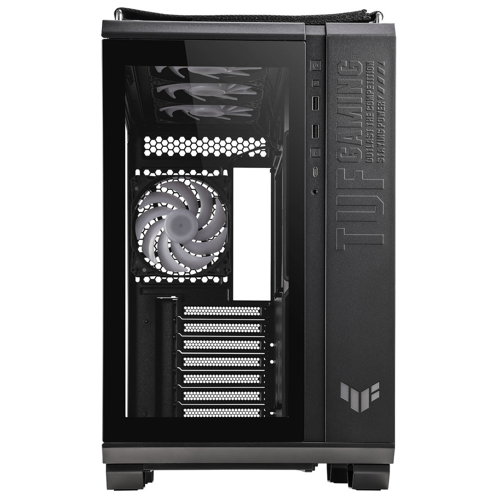 Midi Tower PC. ATX, micro ATX, Mini-ITX. Supported HDD sizes: 2.5,3.5". Number of 2.5" bays: 4 Number of 3.5" bays: 4. Tempered glass panel(s) Anti-dust filter. Black. It’s Wonderfully Split!. Dual Chamber Chassis. TUF Gaming GT502 PLUS configures independent cooling zones for the CPU and GPU. Panoramic View. Tempered glass panels provide a tactfully tinted view for showcasing your build. Front Panel High-Speed USB Type-C. The front panel features a USB 3.2 Gen 2 Type-C port ripe for transfer speeds up to 10 Gbps. Tool-Free Side Panels. The side panels can be removed simply by pressing a button hidden on the rear of the chassis. IT'S WONDERFULLY SPLIT!. Flexible, scalable, and divided up in all the right ways: the TUF Gaming GT502 PLUS puts your prized hardware up front and holds your six with a stack of cooling options, bundled system fans, and an ARGB lighting hub to express ultimate performance your way. Load up, lock in, and watch it all thrive.. DUAL-CHAMBER CHASSIS. CLIMATE CONTROL. GT502 PLUS internals are divided into two chambers, allowing you to build clean and configure independent cooling zones for the CPU and GPU. Freely expand your rig and give system components the ideal environment to dish out frames and slice through workloads.. DISCRETE ARGB HUB. HIDDEN IN PLAIN SIGHT. An integrated ARGB hub that supports up to six Aura Sync devices is neatly tucked away under a sleek cover, keeping cable connections in the shade while your system components bask in a customizable glow.. TOOL-FREE SIDE PANELS. FINGER-FRIENDLY RESTRICTIONS. The TUF Gaming GT502 PLUS continues its builder optimizations with side panels that can be removed simply by pressing a button hidden on the rear of the chassis.. PANORAMIC VIEW. SINGLE-STATE PEEKABOO. Tempered glass panels at the front and side provide a tactfully tinted view of the main chamber, showcasing your build to own the room.. FRONT PANEL HIGH-SPEED USB TYPE-C. WITHIN ARM’S REACH. In addition to two USB-A ports, the TUF Gaming GT502 PLUS front panel features a USB 3.2 Gen 2 Type-C port ripe for transfer speeds up to 10 Gbps.. TUF GAMING-STYLE WOVEN STRAPS. WEAVE HO!. Two durable and detachable straps that can support up to 30 kg (66 lbs) make it much easier to move the chassis around even when it’s packed with hardware.. FULLY MODULAR DESIGN. DOWN TO THE SKELETON. Whether you prefer a modest build or a fully-loaded battle station, the GT502 PLUS is ready. Most of its panels and mounts are removable to ease hardware installation – take it apart to your heart’s content then build it up in your ideal image.. Design. Maximum PSU length. 20 cm. Maximum graphics card length. 40 cm. Maximum CPU cooler height. 16.3 cm. RGB control button. Yes. Anti-dust filter. Yes. Tempered glass panel(s). Yes. Number of expansion slots. 8. Number of 2.5" bays. 4. Number of 3.5" bays. 4. Supported motherboard form factors. ATX, micro ATX, Mini-ITX. Product colour. Black. Type. PC. Form factor. Midi Tower. Ports & interfaces. Combo headphone/mic port. Yes. USB 3.2 Gen 2 (3.1 Gen 2) Type-C ports quantity. 1. USB 3.2 Gen 1 (3.1 Gen 1) Type-A ports quantity. 2. Cooling. Top radiator sizes supported. 120,140,240,280,360 mm. Rear radiator sizes supported. 120 mm. Top fans diameters supported. 120,140 mm. Number of top fans supported (max). 3. Rear fans diameters supported. 120 mm. Number of rear fans supported (max). 1. Storage. Supported HDD sizes. 2.5,3.5". Weight & dimensions. Weight. 11 kg. Height. 450 mm. Depth. 446 mm. Width. 285 mm. Packaging data. Package weight. 13.2 kg. Package height. 525 mm. Package depth. 557 mm. Package width. 380 mm. manual pdf