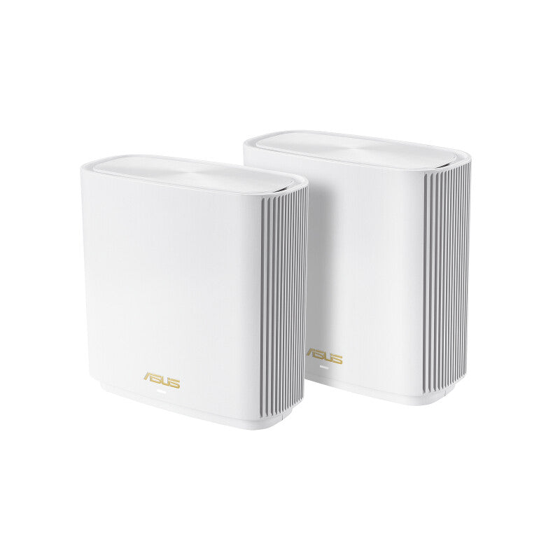 Tabletop router White. Tri-band (2.4 GHz / 5 GHz / 5 GHz) Wi-Fi 6 (802.11ax) 4804 Mbit/s. Gigabit Ethernet. Ethernet WAN. Ethernet LAN (RJ-45) ports: 3. USB port. Web-based management Quality of Service (QoS) support. Whole-home Coverage. High speed tri-band. Stable WiFi.. The ZenWiFi AX system consists of a pair of ASUS AX6600 WiFi 6 routers, featuring unique technologies that give you superfast, reliable and secure WiFi connections — inside or outside your home!. Flexible Network Naming. Uniquely, ZenWiFi AX lets you choose how you name your WiFi networks: a single name for everything, or separate names for each frequency band. The choice is yours!. Make the Internet a. Safer Place for Everyone. AiProtection Pro with Advanced Parental Controls is free for life. It gives you total peace of mind, and you can keep an eye on everything that's happening on your network via the mobile app.. Smart Looks for Smart Homes. ZenWiFi AX works perfectly with smart-home services — including Alexa skills and IFTTT — and is available in black or white to suit your décor.. AiMesh Technology. Easy setup. Flexible management.. Even non-experts can quickly set up AiMesh technology, while more experienced users will appreciate the comprehensive advanced networking. Performance. Through Engineering. ZenWiFi AX features a quad-core CPU to deliver the full performance potential of WiFi 6. Its vertical housing holds a specially designed antenna and circuit board that optimizes WiFi signal strength and provides better airflow, improving thermal performance for reliable operation.. - Special designed vents for increased airflow. - Double heatsink for maximized heat dissipation. - 45° antennas ensure strong WiFi in multi-story homes. - Vertical housing with space between antennas and circuit board for minimal WiFi signal interference. - Quad-core CPU (with WiFi) plus additional WiFi chipset. - 2.5G WAN/LAN port. WAN connection. WAN connection type. RJ-45. SIM card slot. No. DSL WAN. No. Ethernet WAN. Yes. Wireless LAN features. Modulation. 1024-QAM. WLAN data transfer rate (third band). 4804 Mbit/s. WLAN data transfer rate (second band). 1201 Mbit/s. WLAN data transfer rate (first band). 574 Mbit/s. Wi-Fi standards. 802.11a, 802.11b, 802.11g, Wi-Fi 4 (802.11n), Wi-Fi 5 (802.11ac), Wi-Fi 6 (802.11ax). WLAN data transfer rate (max). 4804 Mbit/s. Top Wi-Fi standard. Wi-Fi 6 (802.11ax). Wi-Fi band. Tri-band (2.4 GHz / 5 GHz / 5 GHz). Network. VPN support. VPN Client L2TPVPN Client OVPNVPN Client PPTPVPN Client WireGuardVPN Server IPSecVPN Server OVPNVPN Server PPTPVPN FusionVPN Server WireGuard. VPN Passthrough. Yes. Dynamic DNS (DDNS). Yes. Port forwarding. Yes. Networking standards. IEEE 802.11a, IEEE 802.11b, IEEE 802.11g, IEEE 802.11n, IEEE 802.11ac, IEEE 802.11ax. Ethernet LAN data rates. 2500 Mbit/s. Ethernet LAN interface type. Gigabit Ethernet. Ethernet LAN. Yes. Ports & interfaces. DC-in jack. Yes. USB 3.2 Gen 1 (3.1 Gen 1) Type-A ports quantity. 1. USB port. Yes. Ethernet LAN (RJ-45) ports. 3. Management features. WPS push button. Yes. Reset button. Yes. Quality of Service (QoS) support. Yes. Web-based management. Yes. Security. Network address translation (NAT). Yes. DMZ support. Yes. System event log. Yes. URL filtering. Yes. Filtering. Yes. DoS attack prevention. Yes. Stateful Packet Inspection (SPI). Yes. Guest access. Yes. Firewall. Yes. Security algorithms. WPA2-PSK, WPA-PSK, WPA-Enterprise, WPS. Protocols. Universal Plug and Play (UPnP). Yes. Design. On/off switch. Yes. Product colour. White. Product type. Tabletop router. Packaging content. Quick start guide. Yes. Warranty card. Yes. AC adapter included. Yes. Cables included. LAN (RJ-45). Antenna. Antennas quantity. 6. Antenna design. Internal. Features. Flash memory. 256 MB. Internal memory. 512 MB. Built-in processor. Yes. Power. Output current. 1.75 A. Output voltage. 19 V. AC input voltage. 110 - 240 V. Power source type. AC. Weight & dimensions. Weight. 716 g. Packaging data. Number of products included. 2 pc(s). manual pdf
