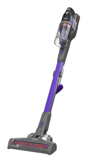 Battery charge indicator - displays the remaining charge so you know when the battery is running low and it's time to recharge. Three-speed setting - use the low and medium speeds for everyday cleaning and extra run time, whilst the high speed can be used for a maximum deep clean. Powered anti-tangle beater bar - Patent-pending design for deep, powerful clean with close to zero hair wrap. Virtually no need to remove and disentangle hair. Twist and clean filter - Beat out the dirt by means of a unique "pepper grinder" feature. Keeps your filter cleaner for longer to maintain optimum performance. Transparent 650ml easy empty bowl - Easy to see when it needs emptying - just take it to the bin and pop the dirt out in one easy move. No need to touch the dirt. With up to 58 minutes runtime on a single charge the BLACK+DECKER 18V POWERSERIES™ Extreme stick vac is engineered to help get jobs done quickly, easily and efficiently. This 4-in-1 stick vac has a powered anti-tangle beater bar that gives you a deep and powerful clean with less than 5% hair wrap and with up to 70% more pick up on carpet*, leaving your home spotless. Ideal for pet owners, get rid of that dog and cat hair with ease with the pet brush. The three-speed settings allow you to vary your speed to suit the job at hand, use the high speed setting for a maximum deep clean, perfect for carpet. The transparent easy empty bowl allows you to pop the dirt out in one easy move keeping your hands clean of dust and debris. Part of the BLACK+DECKER 18V battery platform, allowing you to use the battery across other 18V BLACK+DECKER tools. *compared to the BLACK+DECKER 18V MULTIPOWER vacuum cleaner. Design. Country of origin. China. Wall mountable. Yes. Dust capacity. 0.65 L. Product colour. Purple, Titanium. Dust container type. Bagless. Product type. 2-in-1 stick vacuum. Performance. Number of speeds. 3. Cleaning surfaces. Carpet, Hard floor. Suitable for all types of surface. Yes. Dirt separating method. Cyclonic. Cleaning type. Dry. Ergonomics. Dust container full indicator. Yes. Easy to empty container. Yes. Power. Charging indicator. Yes. Battery low indication. Yes. Battery capacity. 2 Ah. Charging time. 5 h. Suction power. 40 AW. Runtime. 58 min. Battery voltage. 18 V. Battery technology. Lithium-Ion (Li-Ion). Power source. Battery. Packaging data. Package width. 315 mm. Package depth. 703 mm. Package height. 155 mm. Package weight. 4.89 kg. Weight & dimensions. Weight. 4.89 kg. Height. 155 mm. Depth. 703 mm. Width. 315 mm. Packaging content. Shoulder strap. No. Crevice tool. Yes. Logistics data. Shipping (inner) case height. 33 cm. Shipping (inner) case length. 71.5 cm. Shipping (inner) case width. 33.2 cm. Products per pallet layer. 32 pc(s). Pallet gross height. 146.5 cm. Pallet gross length. 120 cm. Pallet gross width. 100 cm