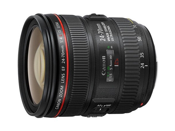 Component for: SLR Standard zoom lens Black. Lens structure (elements/groups): 15/12. Maximum aperture number: 22. Closest focusing distance: 0.38 m. A versatile standard zoom well suited to full-frame EOS cameras and a variety of subjects. A versatile 24-70mm f/4 L-series lens with macro mode for up to 0.7x magnification. Ultrasonic AF provides fast, near-silent focusing. UD and aspherical elements deliver superb image quality.. - Versatile zoom range for a variety of subjects. - Macro mode for up to 0.7x magnification. - Up to four-stop Image Stabilizer. - Two aspherical and two UD lens elements. - Fast ultrasonic AF. - Sealed against dust and moisture. - Nine-bladed aperture for soft bokeh. Lens system. Closest focusing distance. 0.38 m. Maximum aperture number. 22. Number of diaphragm blades. 9. Lens type. Standard zoom lens. Lens structure (elements/groups). 15/12. Component for. SLR. Design. Product colour. Black. Weight & dimensions. Weight. 600 g. Length. 93 mm. Filter size. 77 mm. Diameter. 8.34 cm