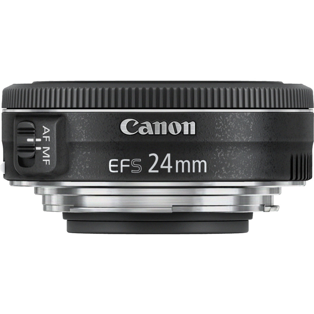 Capture natural looking images with a near-human-eye perspective. Travel anywhere with this lightweight and compact pancake design. Shoot in low light even hand-held, creating beautiful bokeh with the large f/2.8 maximum aperture. Suited to shooting both stills and movies with STM focusing technology. Combat ghosting and flare with Super Spectra lens coatings. Compatible with all Canon EOS DSLR cameras with an APS-C sensor and Canon EOS M series mirrorless cameras using the EF-EOS M Mount Adapter. A highly portable lens in a slim pancake design, ideal for travel and street photography. The advanced optical design creates approximately the same field of view as a 38mm lens for Full Frame camera, for natural human eye perspective even when shooting with an APS-C sensor. Get as near as 0.16 m to subjects for a close-up view of the world as you explore with stepping motor (STM) focusing technology delivering smooth, quiet focusing when capturing movies and live-action stills. The large f/2.8 maximum aperture allows hand-held low-light shooting and control of depth of field letting you isolate your subject against a soft, blurred background.. Lens system. Closest focusing distance. 0.16 m. Maximum aperture number. 22. Number of diaphragm blades. 7. Focal length (35mm film equivalent). 0 - 38 mm. Fixed focal length. 24 mm. Lens viewing angle, diagonal. 59°. Focus adjustment. Auto/Manual. Lens type. Wide lens. Lens structure (elements/groups). 6/5. Performance. Maximum magnification. 0.27x. Camera brands compatibility. Canon. Design. Product colour. Black. Weight & dimensions. Weight. 125 g. Length. 22.8 mm. Filter size. 52 mm. Diameter. 6.82 cm. Other features. Depth. 22.8 mm