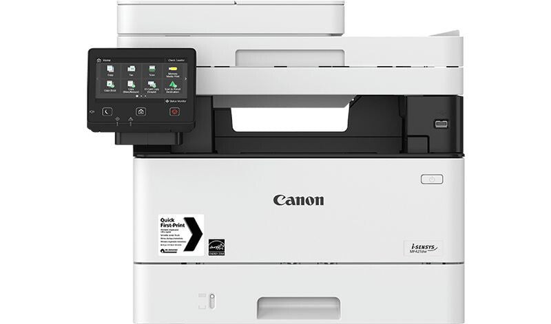 Business Laser Mono printing. 1200 x 1200 DPI. A4 38 ppm. Mono copying Colour scanning Mono faxing. Apple AirPrint, Canon PRINT Business, Google Cloud Print, Mopria Print Service. Direct printing. USB port Wi-Fi Ethernet LAN. Internal memory: 1024 MB Built-in processor 800 MHz. 16.9 kg. Canon i-SENSYS SME multi-function printer, offering speed, durability, quality and efficiency with mobile connectivity.. Printing. Secure printing. Yes. Print margins (top, bottom, right, left). 5 mm. Time to first page (black, normal). 5.5 s. Warm-up time. 14 s. Duplex print speed (ISO/IEC 24734) mono. 30.3 ipm. Print speed (black, draft quality, A4/US Letter). 38 ppm. Print speed (black, normal quality, A4/US Letter). 38 ppm. Maximum resolution. 1200 x 1200 DPI. Duplex printing mode. Auto. Duplex printing. Yes. Printing. Mono printing. Print technology. Laser. Copying. Edge erase function. Yes. ID-card copy function. Yes. N-in-1 copy function (N=). 2, 4. N-in-1 copy function. Yes. Copier resize. 25 - 400%. Maximum number of copies. 999 copies. Time to first copy (black, normal). 6.6 s. Duplex copy speed (black, US Letter). 30.3 ppm. Copy speed (black, normal quality, A4). 38 cpm. Maximum copy resolution. 600 x 600 DPI. Duplex copying. Yes. Copying. Mono copying. Scanning. Scan drivers. ICA, TWAIN, WIA. Greyscale levels. 256. Output colour depth. 24 bit. Input colour depth. 24 bit. Document formats supported. PDF. Image formats supported. JPEG, PNG, TIFF. Duplex scan speed (black). 70 ppm. Duplex scan speed (colour). 26 ppm. Scan speed (colour). 13 ppm. Scan speed (black). 38 ppm. Scan to. Cloud, E-mail, FTP, PC, USB. Scanner type. Flatbed & ADF scanner. Maximum scan resolution. 9600 x 9600 DPI. Optical scanning resolution. 600 x 600 DPI. Duplex scanning. Yes. Scanning. Colour scanning. Fax. Error Correction Mode (ECM). Yes. Multiple-destination sending. Yes. Fax broadcasting. 310 locations. Fax dual access. Yes. Fax forwarding. Yes. Fax speed dialing (max numbers). 281. Speed dialling. Yes. Auto-redialing. Yes. Fax memory. 512 pages. Modem speed. 33.6 Kbit/s. Fax transmission speed. 3 sec/page. Fax resolution (black). 200 x 200 DPI. Duplex faxing. Yes. Faxing. Mono faxing. Features. Number of PCL fonts. 45. Number of PostScript fonts. 136. Number of printer fonts. 181. Printer fonts. PCL, PostScript. Page description languages. PCL 5e, PCL 6, PostScript, UFRII. Number of print cartridges. 1. Recommended duty cycle. 750 - 4000 pages per month. Maximum duty cycle. 80000 pages per month. Input & output capacity. Auto document feeder (ADF) input capacity. 50 sheets. Auto document feeder (ADF). Yes. Paper input type. Cassette, Paper tray. Multi-Purpose tray input capacity. 100 sheets. Multi-Purpose tray. Yes. Total output capacity. 150 sheets. Total input capacity. 250 sheets. Total number of input trays. 1. Paper handling. Auto Document Feeder (ADF) media weight. 50 - 105 g/m². Paper tray media weight. 52 - 120 g/m². Custom media width. 76.2 - 215.9 mm. Custom media length. 127 - 355.6 mm. Envelopes sizes. C5, Com-10, DL, Monarch. Non-ISO print media sizes. 16K. ISO C-series sizes (C0...C9). C5. ISO B-series sizes (B0...B9). B5. ISO A-series sizes (A0...A9). A4, A5, A6. Multi-purpose tray media types. Envelopes, Executive, Legal, Letter. Paper tray media types. Envelopes, Heavy paper, Labels, Plain paper, Postcard, Recycled paper, Thin paper. Maximum ISO A-series paper size. A4. Ports & interfaces. USB port. Yes. Direct printing. Yes. Standard interfaces. Ethernet, USB, USB 2.0, Wireless LAN. Network. Mobile printing technologies. Apple AirPrint, Canon PRINT Business, Google Cloud Print, Mopria Print Service. IP address filtering. Yes. Email protocols. Pop, SMTP. Management protocols. SNMPv1, SNMPv3. Supported network protocols (IPv4). DHCP, ARP+PING, Auto IP, WINS, Bonjour(mDNS), HTTP, HTTPS, POP, LPD, RAW, Port9100, IPP, IPPS, WSD. Supported network protocols (IPv6). DHCPv6, Bonjour(mDNS), HTTP, HTTPS, POP, LPD, RAW, Port9100, IPP, IPPS, WSD. Security algorithms. 64-bit WEP, 128-bit WEP, WPA-AES. Wi-Fi standards. 802.11b, 802.11g, Wi-Fi 4 (802.11n). Cabling technology. 10/100/1000Base-T(X). Ethernet LAN data rates. 10,100,1000 Mbit/s. Ethernet LAN. Yes. Wi-Fi. Yes. Performance. Sound power level (standby). 72 dB. Sound pressure level (quiet mode). 55 dB. Processor frequency. 800 MHz. Built-in processor. Yes. Internal memory. 1024 MB. General. Product family. i-SENSYS. Design. Colour display. Yes. Control type. Touch. Touchscreen. Yes. Display diagonal. 12.7 cm (5"). Display. LCD. Built-in display. Yes. Market positioning. Business. Product colour. Black, White. Power. AC input voltage. 220 - 240 V. AC input frequency. 50 - 60 Hz. Energy Star Typical Electricity Consumption (TEC). 1.2 kWh/week. Power consumption (sleep). 0.9 W. Power consumption (average operating). 10 W. Power consumption (max). 1300 W. System requirements. Mobile operating systems supported. Android, iOS. Server operating systems supported. Windows Server 2008, Windows Server 2012, Windows Server 2016. Linux operating systems supported. Yes. Mac operating systems supported. Mac OS X 10.10 Yosemite, Mac OS X 10.11 El Capitan, Mac OS X 10.12 Sierra, Mac OS X 10.13 High Sierra, Mac OS X 10.14 Mojave, Mac OS X 10.9 Mavericks. Windows operating systems supported. Windows 10, Windows 7, Windows 8, Windows 8.1. Operational conditions. Operating relative humidity (H-H). 20 - 80%. Operating temperature (T-T). 10 - 30 °C. Weight & dimensions. Weight. 16.9 kg. Height. 392 mm. Depth. 464 mm. Width. 453 mm. Packaging content. Included cartridge capacity (black). 3100 pages. Cartridge(s) included. Yes. Logistics data. Harmonized System (HS) code. 84433100. Other features. Fonts included. Y. leaflet