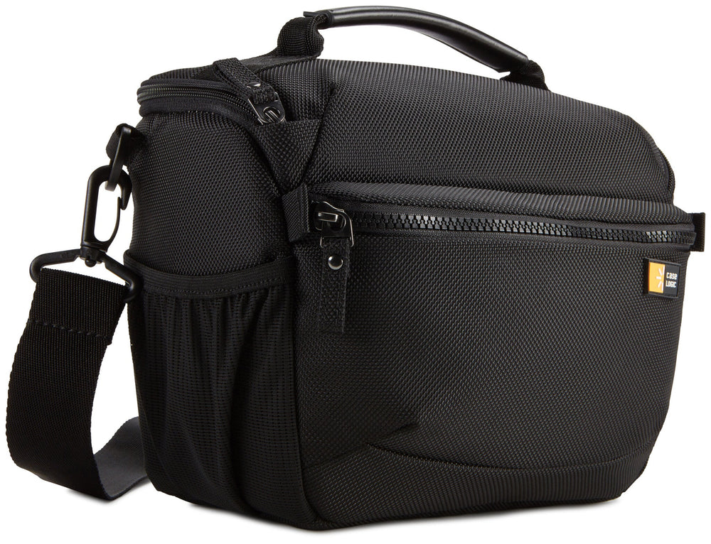 Shoulder case. Material: Polyester. Brand compatibility: Any brand. Shoulder strap. Black. A modern camera bag designed to protect a DSLR camera and accessories.. 1. Fits a DSLR camera with lens and accessories. 2. Adjustable, padded dividers provide custom protection. 3. Front zippered pocket with mesh slip pockets keeps accessories secure yet accessible. 4. Internal zippered pocket and secure memory card pouches. 5. Mesh side pockets conveniently store a lens cap and small accessories. 6. Removable, adjustable shoulder strap, comfortable grab handle and belt loops provide multiple carry options. 7. Durable exterior constructed of 1680d polyester. Features. Shoulder strap. Yes. Compatibility. DSLR. Brand compatibility. Any brand. Material. Polyester. Product colour. Black. Case type. Shoulder case. Weight & dimensions. Interior dimensions (W x D x H). 155 x 125 x 170 mm. Weight. 360 g. Height. 180 mm. Depth. 160 mm. Width. 250 mm. Packaging data. Package height. 210 mm. Package depth. 160 mm. Package width. 250 mm. manual pdf
