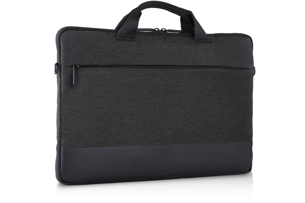 Sleeve case 35.6 cm (14") Black, Grey. Brand compatibility: Dell. Carrying handle(s) Shoulder strap. Dust resistant, Scratch resistant, Water resistant. 581 g. Stylish protection for your laptop on-the-go. Slip your 13" laptop into the stylish Dell Professional Sleeve 13 to protect your everyday essentials and electronics wherever your busy day takes you. The professionally chic heather dark gray exterior and plush-lined interior protect your laptop from scratches or damage.. Lightweight and comfortable design. The sleeve is lightweight and comfortable to carry around with handles that allow you to grab and go. Or you can go hands-free by using the detachable, adjustable shoulder strap.. Weather resistant materials prevent damage. The heather gray exterior is water resistant to prevent water damage as you go about your day. Plush French blue lining keeps your laptop snug and secure inside the sleeve.. Superb functionality for easy transport. A front organizer panel keeps all your everyday essentials within reach and easy-grip zipper pulls allow easy access to your pens or wallet. While traveling, slip the sleeve onto a rolling luggage with the convenient trolley strap.. Fits 14" laptops. The Dell Professional Sleeve 14 snugly fits up to 14" Dell laptops for secure protection wherever your busy day takes you.. The Dell Professional Sleeve 14 protects your 14” laptop wherever your busy day takes you. The professionally-stylish heather gray exterior is also water resistant to protect your laptop from the weather. The plush French blue lined interior keeps your laptop snug and secure. Safely transport your laptop using the handles on the sleeve or use the detachable, adjustable shoulder strap for hands-free transport. Easy-grip zipper pulls allow quick access to all your everyday essentials which you can store within the front organizer.. Features. Quantity. 1. Protection features. Dust resistant, Scratch resistant, Water resistant. Trolley retainer strap. Yes. Shoulder strap. Yes. Removable shoulder strap. Yes. Carrying handle(s). Yes. Front pocket. Yes. Expandable. No. Brand compatibility. Dell. Product main colour. Black, Grey. Case type. Sleeve case. Maximum screen size. 35.6 cm (14"). Surface coloration. Monochromatic. Weight & dimensions. Weight. 581 g. Height. 290 mm. Depth. 50 mm. Width. 350 mm. Logistics data. Harmonized System (HS) code. 84733080. Other features. Handle(s). Yes