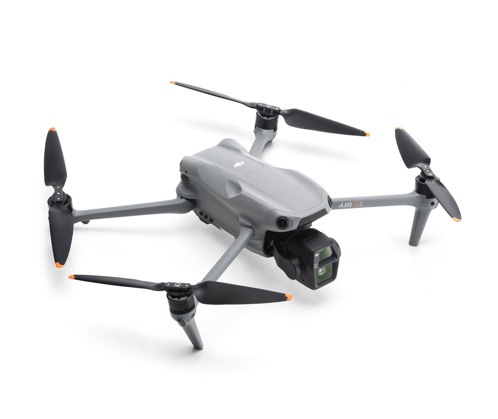 Quadcopter 27 m/s 4 rotors 32000 m Grey. Foldable. GPS (satellite) Wi-Fi Bluetooth. 50 MP 3840 x 2160 pixels CMOS 25.4 / 1 mm (1 / 1") 240 fps. Lithium-Ion (Li-Ion) 4276 mAh 62.5 Wh. DJI Air 3S Fly More Combo (RC-N3). Design. Suitable for outdoor use. Yes. Foldable. Yes. Construction type. Ready-to-fly (RTF). Product colour. Grey. Type. Quadcopter. Features. Bluetooth version. 5.2. Bluetooth. Yes. Wi-Fi. Yes. Wi-Fi standards. 802.11a, 802.11b, 802.11g, Wi-Fi 5 (802.11ac). GPS (satellite). Yes. Hovering time (max). 41 min. Maximum wind resistance. 12 m/s. Maximum descent speed. 10 m/s. Maximum ascent speed. 10 m/s. Maximum tilt angle. 36°. Vertical hover accuracy. 0.1 m. Horizontal hover accuracy. 0.3 m. Maximum operating distance. 32000 m. Maximum flight altitude. 6000 m. Maximum speed. 27 m/s. Number of propeller blades. 2. Number of rotors. 4 rotors. Camera. Maximum control speed (tilt). 100 °/sec. Mechanical roll range. -50 - 50°. Mechanical tilt range. 70 - 135°. Digital zoom. 9x. Image formats supported. DNG, JPEG, RAW. Maximum image resolution. 8192 x 6144 pixels. Second camera maximum image resolution. 8064 x 6048 pixels. Camera shutter speed. 1/8000-2 s. Second camera camera shutter speed. 1/16000 s. Video formats supported. AVC, H.264, HEVC/H.265, MP4, MPEG4. Bitrate at maximum video resolution. 130 Mbit/s. Second camera field of view (FOV) angle. 35°. Field of view (FOV) angle. 84°. Maximum frame rate. 240 fps. Second camera maximum frame rate. 240 fps. Second camera optical sensor size. 25.4 / 1.3 mm (1 / 1.3"). Optical sensor size. 25.4 / 1 mm (1 / 1"). Sensor type. CMOS. Second camera sensor type. CMOS. Supported video modes. 1080p, 2160p. Video resolutions. 1920 x 1080,3840 x 2160 pixels. Maximum video resolution. 3840 x 2160 pixels. Megapixel (approx.). 50 MP. Second camera megapixel (approx.). 48 MP. Memory. Compatible memory cards. MicroSD (TransFlash). Memory card slot(s). Yes. Internal memory. 42 GB. Transmitter. Operating frequency. 2400, 5100, 5800 MHz. Battery. Battery voltage. 17.2 V. Battery capacity. 4276 mAh. Battery technology. Lithium-Ion (Li-Ion). Battery operated. Yes. Power. AC adapter output current. 2 A. AC adapter frequency. 50/60 Hz. AC adapter input voltage. 100 - 240 V. AC adapter power. 65 W. Operational conditions. Operating temperature (T-T). -10 - 40 °C. Weight & dimensions. Weight. 724 g. Height. 100.6 mm. Depth. 266.1 mm. Width. 325.5 mm. Packaging content. Charger. Yes. Spare propeller(s) included. Yes. Gimbal protector. Yes. Carrying case. Yes. Batteries included. Yes. Remote control included. Yes. Cables included. RC, USB Type-C