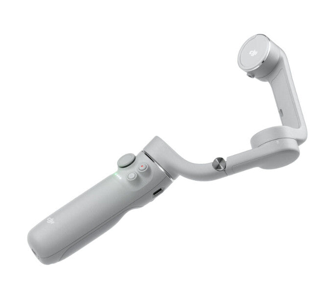 ShotGuides. 3-Axis Stabilization. ActiveTrack 4.0. Built-In Extension Rod. Portable and Foldable. Magnetic Design. Portable and palm-sized with a built-in extension rod, DJI OM 5 is a versatile companion that unlocks the full potential of your smartphone. Enjoy flawless selfies, super-smooth video, automatic tracking, and much more. A new ShotGuides feature even provides creative tips, empowering you to get stunning shots wherever you go. With OM 5, get ready to master every shot.. DJI Stabilization Technology. DJI OM 5 gives users the ability to film with flawless stabilization, resulting in smooth footage that wows.. New Design, Better Results. Foldable and lightweight, OM 5 was designed to fit in the palm of your hand. That means you can easily take it along for any adventure. And for the first time, we’ve included a built-in extension rod, letting you include more friends in a selfie or capture footage from unique new angles.. Shoot Like a Pro. ShotGuides automatically recognizes your environment and recommends helpful shooting tips and creative templates. From recording to editing, this advanced new feature lets even first-time users capture stunning results.. Stay in Frame. What did we improve for ActiveTrack 4.0? Pretty much everything. From more advanced recognition capabilities to higher responsiveness, there’s even a new automatic face tracking feature for selfie mode. Tracking that’s this good and reliable lets you focus on your surroundings and stay in the moment.. A Mode for Every Moment. Any moment can be a masterpiece, and with DJI OM 5, a wide range of intelligent shooting modes means you’ll always be ready to creatively capture it all.. Features. Easy setup. Yes. Maximum device depth. 1 cm. Maximum device width. 8.4 cm. Minimum device depth. 6.9 mm. Minimum device width. 6.7 cm. Rotating. Yes. Motorized. Yes. Foldable. Yes. Mounting. 1/4". Product colour. Grey. Type. Smartphone camera stabilizer. Performance. Mechanical roll range. -127.05 - 208.95°. Mechanical tilt range. -101.46 - 229.54°. Mechanical pan range. -161.12 - 172.08°. Ports & interfaces. USB charging port. Yes. Bluetooth version. 5.0. Bluetooth. Yes. Power. Operating time. 6.4 h. Charging time. 1.5 h. Battery voltage. 8.8 V. Battery capacity. 1000 mAh. Built-in battery. Yes. Operational conditions. Operating temperature (T-T). 0 - 40 °C. Weight & dimensions. Dimensions folded (WxDxH). 74.6 x 37 x 174.7 mm. Weight. 292 g. Height. 264.5 mm. Depth. 92.3 mm. Width. 111.1 mm