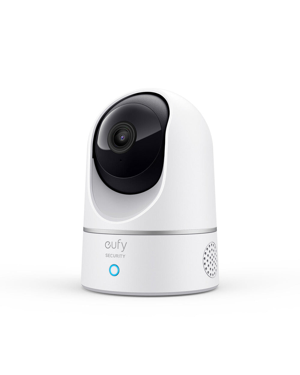 Knows Who’s There: The on-device AI instantly determines whether a human or pet is present within the camera’s view (human facial detection only). The Key is in the Detail: View every event in crisp 2K clarity (1080P while using HomeKit) so you see exactly what is happening inside your home (24/7 1080p recording). Smart Integration: Connect your Indoor Cam to Apple HomeKit, the Google Assistant, or Amazon Alexa for complete control over your surveillance. (HomeKit available via update. When opening HomeKit, users must add the device in the eufy Security app and then complete the activation process.). Follows the Action: When motion is detected the camera automatically tracks and follows the moving object. Pan the lens 360° horizontally or tilt it 96° vertically to get a clear view of the whole room. Communicate From Your Camera: Speak in real-time to anyone who passes via the camera’s built-in two-way audio. Home Security Indoor Camera, Human and Pet AI, Works with Voice Assistants, Motion Tracking, Night Vision, MicroSD Card Required, HomeBase Not Required.. Know When You Are Needed. The built-in AI notifies you of excessive noise levels so you know when your little one needs some attention.. Instant Detection. As soon as motion is detected the camera will start recording and push a notification in case you want to see what is happening.. Activity Zones. Only receive the alerts which matter. Customize the area in which detection takes place to suit your home.. Sight at Night. Keep an eye on any room, even in low light settings.. Communicate From Your Camera. Speak in real-time to anyone who passes via the camera’s built-in two-way audio.. Instant Mobile Alerts. Notifies you in seconds when suspicious motions are detected.. Dual Storage Options. Store your data and recordings locally or in the cloud.. Follows the Action. When motion is detected the camera automatically tracks and follows the moving object.. Performance. Operating frequency. 2400 MHz. Remote viewing. Yes. Wide Dynamic Range (WDR). Yes. Virtual assistant. Amazon Alexa & Google Assistant. Auto-tracking. Yes. Placement supported. Indoor. Type. IP security camera. Design. Product colour. White. Mounting type. Desk. Form factor. Dome. Camera. Pan range. 0 - 360°. Tilt angle range. 0 - 96°. Field of view (FOV) angle. 125°. Camera tilt control. Yes. Camera pan control. Yes. Image sensor. Optical sensor size. 25.4 / 2.7 mm (1 / 2.7"). Number of sensors. 1. Sensor type. CMOS. Lens system. Digital zoom. 8x. Zoom capability. Yes. Night vision. Number of illumination LEDs. 8. LED type. IR. Night vision distance. 10 m. Night vision. Yes. Video. Video recording. Yes. Supported video modes. 1080p. Video compression formats. H.264, H.265. Maximum resolution. 2048 x 1080 pixels. Audio. Built-in microphone. Yes. Audio system. 2-way. Built-in speaker(s). Yes. Network. Bluetooth. No. Wi-Fi. Yes. Ethernet LAN. No. Storage. Maximum memory card size. 128 GB. Compatible memory cards. MicroSD (TransFlash), MicroSDHC, MicroSDXC. Card reader integrated. Yes. Built-in HDD. No. Ports & interfaces. USB port. Yes. Security. Video motion detection. Yes. Active tampering alarm. Yes. Security algorithms. 256-bit AES. Power. DC output current. 2 A. DC output voltage. 5. Power source type. DC. Operational conditions. Operating temperature (T-T). 0 - 40 °C. System requirements. Mobile operating systems supported. Android 10.0, Android 5.0, Android 5.1, Android 6.0, Android 7.0, Android 7.1, Android 7.1.2, Android 8.0, Android 9.0, iOS 10.0, iOS 11.0, iOS 11.4, iOS 12, iOS 13, iOS 14.5, iOS 9.0, iOS 9.1, iOS 9.2, iOS 9.3. Weight & dimensions. Weight. 217 g. Height. 108 mm. Depth. 75 mm. Width. 75 mm. Packaging content. Manual. Yes. Memory card included. No. Screws included. Yes. Mounting brackets included. Yes. Cables included. USB. Number of cameras. 1. Logistics data. Harmonized System (HS) code. 85258900. manual pdf. leaflet