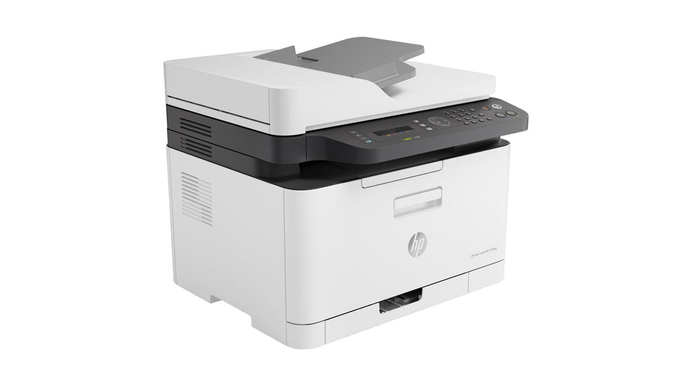 Scan to PDF. Print, copy, scan, fax. Print speed up to 19 ppm (black) and 4 ppm (colour). Up to 600 x 600 dpi 4 bits. Dynamic security enabled printer Certain HP printers are intended to work only with cartridges that have a new or reused HP chip or electronic circuitry. These printers use dynamic security measures to block cartridges using a non-HP chip or electronic circuitry. Periodic firmware updates will maintain the effectiveness of these measures and block cartridges that previously worked. Reused HP chips and electronic circuitry enable the use of reused, remanufactured, and refilled cartridges.. Printing. Poster printing function. Yes. Booklet printing function. Yes. Secure printing. Yes. Watermark printing. Yes. N-in-1 print function. Yes. Time to first page (colour, normal). 25.3 s. Time to first page (black, normal). 12.4 s. Warm-up time. 38 s. Print speed (colour, normal quality, A4/US Letter). 4 ppm. Print speed (black, normal quality, A4/US Letter). 18 ppm. Print resolution black. 600 x 600 DPI. Print resolution colour. 600 x 600 DPI. Maximum resolution. 600 x 600 DPI. Duplex printing mode. Manual. Duplex printing. Yes. Printing. Colour printing. Print technology. Laser. Copying. Auto fit function. Yes. Background adjustment function. Yes. ID-card copy function. Yes. N-in-1 copy function (N=). 2, 4. N-in-1 copy function. Yes. Copier resize. 25 - 400%. Maximum number of copies. 999 copies. Time to first copy (colour, normal). 32.1 s. Time to first copy (black, normal). 12.6 s. Copy speed (colour, normal quality, A4). 4 cpm. Copy speed (black, normal quality, A4). 18 cpm. Maximum copy resolution. 600 x 600 DPI. Duplex copying. Yes. Copying. Colour copying. Scanning. Scan drivers. TWAIN, WIA. Greyscale levels. 256. Input colour depth. 24 bit. Document formats supported. PDF. Image formats supported. JPG, TIFF. Scan to. Software, TWAIN, WIA. Scan technology. CIS. Scanner type. Flatbed & ADF scanner. Maximum scan area. 216 x 297 mm. Maximum scan resolution. 19200 x 19200 DPI. Optical scanning resolution. 600 x 600 DPI. Scanning. Colour scanning. Fax. Auto reduction. Yes. Fax delayed sending. Yes. Fax forwarding. Yes. Speed dialling. Yes. Auto-redialing. Yes. Fax memory. 400 pages. Modem speed. 33.6 Kbit/s. Fax resolution (black). 300 x 300 DPI. Features. HP segment. Small medium business. Replacement cartridges. HP 117A Black Original Laser Toner Cartridge (1,000 pages) W2070A; HP 117A Cyan Original Laser Toner Cartridge (700 pages) W2071A; HP 117A Yellow Original Laser Toner Cartridge (700 pages) W2072A; HP 117A Magenta Original Laser Toner Cartridge (700 pages) W2073A. Country of origin. China. All-In-One-multitasking. Yes. Page description languages. SPL. Printing colours. Black, Cyan, Magenta, Yellow. Number of print cartridges. 4. Digital sender. Yes. Duplex functions. Scan. Recommended duty cycle. 100 - 500 pages per month. Maximum duty cycle. 20000 pages per month. Input & output capacity. Maximum output capacity. 50 sheets. Maximum input capacity. 150 sheets. Maximum number of input trays. 1. Auto document feeder (ADF) input capacity. 40 sheets. Auto document feeder (ADF). Yes. Paper tray 1 input capacity. 150 sheets. Total output capacity. 50 sheets. Total input capacity. 150 sheets. Total number of input trays. 1. Paper handling. Paper tray media weight. 60 - 220 g/m². Custom media width. 76 - 216 mm. Custom media length. 148.5 - 356 mm. JIS B-series sizes (B0...B9). B5. Non-ISO print media sizes. Oficio. ISO B-series sizes (B0...B9). B5. ISO A-series sizes (A0...A9). A4, A5, A6. Paper tray media types. Bond paper, Glossy paper, Heavy paper, Labels, Plain paper, Recycled paper, Thick paper. Maximum print size. 216 x 356 mm. Maximum ISO A-series paper size. A4. Ports & interfaces. USB port. Yes. Direct printing. Yes. Network. Mobile printing technologies. Apple AirPrint, Google Cloud Print, Mopria Print Service. Security algorithms. IPSec, SNMPv2. Wi-Fi standards. 802.11b, 802.11g, Wi-Fi 4 (802.11n). Wi-Fi Direct. Yes. Cabling technology. 10/100Base-T(X). Ethernet LAN data rates. 10,100 Mbit/s. Ethernet LAN. Yes. Wi-Fi. Yes. Performance. Sound power level (printing). 6.5 dB. Processor frequency. 800 MHz. Built-in processor. Yes. Maximum internal memory. 128 MB. Internal memory. 128 MB. General. Product family. Color Laser. Design. Control type. Buttons. Display. LCD. Built-in display. Yes. Market positioning. Home & office. Product colour. Black, White. Power. AC input voltage. 220 - 240 V. AC input frequency. 50/60 Hz. Energy Star Typical Electricity Consumption (TEC). 1.093 kWh/week. Power consumption (off). 0.2 W. Power consumption (sleep). 1.9 W. Power consumption (ready). 38 W. Power consumption (printing). 300 W. Brand-specific features. HP GTIN (EAN/UPC) with options. (ABT) 193015507333; (ABY) 193015507340; (ACQ) 193015507371; (B13) 193905621620; (B19) 193015507388; (BAZ) 193015507395. HP GTIN (EAN/UPC). 193015507333, 193015507340, 193015507371, 193905621620, 193015507388, 193015507395. HP dynamic security. Yes. HP Auto-On/Auto-Off. Yes. System requirements. Server operating systems supported. Windows Server 2008 R2, Windows Server 2012, Windows Server 2016. Mac operating systems supported. Mac OS X 10.13 High Sierra, Mac OS X 10.12 Sierra, Mac OS X 10.14 Mojave, Mac OS X 10.11 El Capitan. Windows operating systems supported. Windows 8, Windows 11. Operational conditions. Operating relative humidity (H-H). 10 - 80%. Operating temperature (T-T). 10 - 30 °C. Storage temperature (T-T). -20 - 40 °C. Certificates. Certification. EN 61000-3-2: 2014, EN 61000-3-3: 2013, EN55024: 2010, EN 55032: 2012/AC: 2013, 47 CFR Part 15, Subpart B I ANSI C63.4-2009, ICES-003 Issue 5, KN32, KN35, GB/T 9254-2008, GB17625.1-2012, CISPR22: 2008, CISPR32: 2012, CNS 13438 (Other EMC approvals as required by individual countries.). Sustainability. Sustainable technologies and materials. Mercury free. Doesn't contain. Mercury. Carbon footprint. Total carbon emissions, w/o use phase (kg 