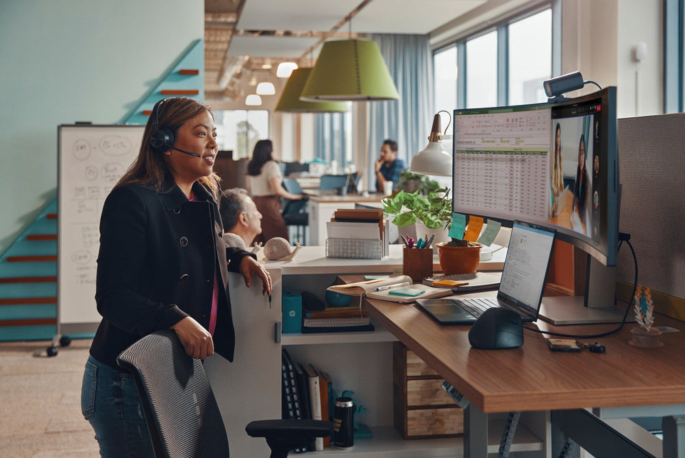 Replace two QHD monitors with this one massive, 44.5" diagonal, dual QHD curved monitor. With Virtual Dual Display, split the monitor into two separate monitors to screen share a presentation on one screen and interact with your audience on the other[1]. Plus, simultaneously view and work between 2 computers with HP Device Bridge 2.0[2].. When you're working from both the office and home, free yourself, your desk and your laptop from a mess of cables by simply connecting one USB-C cable that connects your display, all your accessories, and charges your laptop at 100W. To make your workday even easier, instantly start your devices with Single Power On[5] and secure a stable internet connection with RJ-45.. When doing your best relies on feeling your best, easily find all-day physical comfort with 3-way adjustability optimized by the Ergonomic Setup Guide[3], and view comfortably, day or night, with the ambient light sensor that automatically adapts display brightness to your surroundings[4] with added comfort through HP Eye Ease.. Spark joy on your desk and in the world with this elegantly designed monitor, featuring integrated 3W dual speakers, that elevates and maximizes your space. Beyond the looks, be inspired by this monitor that contains recycled materials[6]. Plus, customize your space with the matching accessory ecosystem[8].. Crafted to Captivate. Uniquely designed to deliver incredible immersion and expansive flexibility, the HP E45c G5 DQHD Curved Monitor augments what’s possible, so there's nothing between you and your best. Stylishly crafted with your comfort and the planet in mind, this ultrawide display is a powerhouse of productivity.. Display. sRGB coverage (typical). 99%. Colour gamut. 99%. Colour gamut standard. sRGB. Colour depth. 8 bit. Surface hardness. 3H. Haze rate. 25%. High Dynamic Range (HDR) technology. High Dynamic Range (HDR) 400. High Dynamic Range (HDR) supported. Yes. Display diagonal (metric). 113 cm. Viewable size, vertical. 30.6 cm. Viewable size, horizontal. 108.8 cm. Vertical scan range. 48 - 165 Hz. Horizontal scan range. 30 - 250 kHz. Pixel density. 120 ppi. Pixel pitch. 0.21 x 0.21 mm. Display number of colours. 16.7 million colours. Viewing angle, vertical. 178°. Viewing angle, horizontal. 178°. Maximum refresh rate. 165 Hz. Contrast ratio (dynamic). 8000000:1. Contrast ratio (typical). 3000:1. Aspect ratio. 32:9. Supported graphics resolutions. 1024 x 768 (XGA), 1280 x 1024 (SXGA), 1280 x 720 (HD 720), 1280 x 800, 1440 x 900 (WXGA+), 1600 x 900, 1680 x 1050 (WSXGA+), 1920 x 1080 (HD 1080), 1920 x 1200 (WUXGA), 2560 x 1440, 3440 x 1440, 5120 x 1440, 640 x 480 (VGA), 720 x 400, 800 x 600 (SVGA). Screen curvature rating. 1500R. Screen shape. Curved. Anti-glare screen. Yes. Display surface. Matt. Response time measurement type. GTG (Gray to Gray). Response time. 3 ms. Display brightness (typical). 400 cd/m². Panel type. VA. HD type. Dual QHD. Touchscreen. No. Display technology. LCD. Native aspect ratio. 32:9. Display resolution. 5120 x 1440 pixels. Display diagonal. 113 cm (44.5"). Performance. HP segment. Business. Low Blue Light technology. Yes. Flicker-free technology. Yes. Fast charging. Yes. AMD FreeSync. No. NVIDIA G-SYNC. No. Multimedia. Built-in microphone. Yes. Built-in camera. No. RMS rated power. 6 W. Number of speakers. 2. Built-in speaker(s). Yes. Design. Feet colour. Silver, Black. Detachable stand. Yes. Product colour. Black. Market positioning. Business. Ports & interfaces. HDCP. Yes. DisplayPort version. 1.4. DisplayPorts quantity. 1. HDMI version. 2.1. HDMI ports quantity. 1. HDMI. Yes. USB Power Delivery up to. 100 W. USB Power Delivery (USB PD). Yes. USB Type-C downstream ports quantity. 2. USB Type-A downstream ports quantity. 4. Number of USB Type-C upstream ports quantity. 2. USB hub version. 3.2 Gen 1 (3.1 Gen 1). Built-in USB hub. Yes. Network. Remotely operated. Yes. Ethernet LAN. Yes. Ergonomics. On Screen Display (OSD). Yes. Tilt angle range. -5 - 20°. Tilt adjustment. Yes. Swivel angle range. -10 - 10°. Swivelling. Yes. Pivot. Yes. Adjustable height (max). 15 cm. Height adjustment. Yes. Cable lock slot. Yes. Panel mounting interface. 100 x 100 mm. VESA mounting. Yes. Power. European Product Registry for Energy Labelling (EPREL) code. 1399249. Energy efficiency scale. A to G. Power supply type. Internal. AC input frequency. 50/60 Hz. AC input voltage. 100 - 240 V. Power consumption (off). 0.3 W. Power consumption (max). 275 W. Power consumption (standby). 0.5 W. Power consumption (typical). 55 W. Energy efficiency class (HDR). G. Energy efficiency class (SDR). G. Operational conditions. Non-operating altitude. 0 - 12192 m. Operating altitude. 0 - 5000 m. Storage relative humidity (H-H). 20 - 80%. Operating relative humidity (H-H). 5 - 95%. Operating temperature (T-T). 5 - 35 °C. Weight & dimensions. Height (without stand). 335.6 mm. Depth (without stand). 148.1 mm. Width (without stand). 1084.3 mm. Weight (with stand). 14.6 kg. Height (with stand). 521.8 mm. Depth (with stand). 307 mm. Width (with stand). 1084.3 mm. Packaging data. Package type. Box. Package weight. 22.5 kg. Package height. 485 mm. Package depth. 280 mm. Package width. 1267 mm. Packaging content. Bundled software. HP Display Center; HP Client Management Script Library. Quick start guide. Yes. Cables included. AC, USB Type-C to USB Type-C. Stand included. Yes. Sustainability. Sustainable technologies and materials. Outside box and corrugated cushions are 100% sustainably sourced and recyclable; Contains ocean-bound recycled plastic; 80% ITE-derived closed loop plastic; At least 15% recycled metal. Sustainability certificates. ENERGY STAR. Carbon footprint. Total carbon footprint (kg of CO2e). 200. Carbon emissions, manufacturing (kg of CO2e). 156. Carbon emissions, logistics (kg of CO2e). 3. Carbon emissions, end-of-life (kg of CO2e). 2. Total carbon emissions, w/o use phase (kg of CO2e). 36. Other features. UNSPSC-code. 43211902. Certification. BI