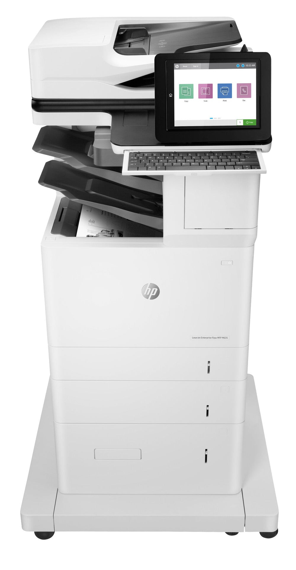Scan to email; Two-sided printing; 150-sheet ADF; Energy Efficient; Strong Security. Print, copy, scan, fax. Print speed up to 65 ppm (black). Up to 1200 x 1200 dpi. HP JetIntelligence Cartridge. Dynamic security enabled printer Certain HP printers are intended to work only with cartridges that have a new or reused HP chip or electronic circuitry. These printers use dynamic security measures to block cartridges using a non-HP chip or electronic circuitry. Periodic firmware updates will maintain the effectiveness of these measures and block cartridges that previously worked. Reused HP chips and electronic circuitry enable the use of reused, remanufactured, and refilled cartridges.. Printing. Secure printing. Yes. Watermark printing. Yes. N-in-1 print function. Yes. Time to first page (black, normal). 5.2 s. Warm-up time. 170 s. Print speed (black, normal quality, A4/US Letter). 61 ppm. Print resolution black. 1200 x 1200 DPI. Maximum resolution. 1200 x 1200 DPI. Duplex printing mode. Auto. Duplex printing. Yes. Printing. Mono printing. Print technology. Laser. Copying. Auto fit function. Yes. ID-card copy function. Yes. N-in-1 copy function. Yes. Copier resize. 25 - 400%. Maximum number of copies. 9999 copies. Time to first copy (black, normal). 4.9 s. Copy speed (black, normal quality, A4). 61 cpm. Maximum copy resolution. 600 x 600 DPI. Duplex copying. Yes. Copying. Mono copying. Scanning. Scan drivers. TWAIN. Greyscale levels. 256. Input colour depth. 48 bit. Document formats supported. CSV, HTML, PDF, RTF, UNICODE, XPS. Image formats supported. JPEG, MTIFF, TIFF. Scan speed (colour). 83 ppm. Scan speed (black). 83 ppm. Scan to. E-mail, Network folder, USB, TWAIN, Software. Scan technology. CCD. Scanner type. Flatbed & ADF scanner. Maximum scan area. 216 x 356 mm. Maximum scan resolution. 600 x 600 DPI. Optical scanning resolution. 600 x 600 DPI. Duplex scanning. Yes. Scanning. Colour scanning. Fax. Auto reduction. Yes. Fax delayed sending. No. Fax forwarding. Yes. Speed dialling. Yes. Auto-redialing. Yes. Fax memory. 500 pages. Modem speed. 33.6 Kbit/s. Fax transmission speed. 6 sec/page. Fax resolution (black). 300 x 300 DPI. Faxing. Colour faxing. Features. HP segment. Business. Replacement cartridges. HP 147A Black Original LaserJet Toner Cartridge (10,500 pages) W1470A; HP 147X High Yield Black Original LaserJet Toner Cartridge (25,200 pages) W1470X; HP 147Y Extra High Yield Black Original LaserJet Toner Cartridge (42,000 pages) W1470Y. Country of origin. China, Mexico, Vietnam. All-In-One-multitasking. Yes. Printer fonts. PostScript, Scalable, TrueType, Windows. Page description languages. PCL 5, PCL 6, PDF 1.7, PostScript 3. Printing colours. Black. Number of print cartridges. 1. Digital sender. Yes. Duplex functions. Print, Copy, Scan. Recommended duty cycle. 5000 - 30000 pages per month. Maximum duty cycle. 300000 pages per month. Input & output capacity. Maximum output capacity. 500 sheets. Maximum input capacity. 3750 sheets. Auto document feeder (ADF) input capacity. 150 sheets. Auto document feeder (ADF). Yes. Multi-Purpose tray input capacity. 100 sheets. Multi-Purpose tray. Yes. Paper tray 2 input capacity. 550 sheets. Paper tray 1 input capacity. 100 sheets. Total output capacity. 1000 sheets. Total input capacity. 3200 sheets. Total number of input trays. 3. Paper handling. Paper tray media weight. 60 - 120 g/m². Custom media width. 76 - 216 mm. Custom media length. 127 - 356 mm. Photo paper sizes (imperial). 4x6". Photo paper sizes. 10x15 cm. Envelopes sizes. B5, C5, C6, DL. JIS B-series sizes (B0...B9). B5, B6. Non-ISO print media sizes. Oficio, 16K. ISO C-series sizes (C0...C9). C5, C6. ISO B-series sizes (B0...B9). B5. ISO A-series sizes (A0...A9). A4, A5, A6. Paper tray media types. Bond paper, Card stock, Envelopes, Heavy paper, Labels, Letterhead, Plain paper, Pre-printed, Recycled paper, Rough paper, Thick paper, Transparencies. Maximum print size. 212 x 352 mm. Maximum ISO A-series paper size. A4. Ports & interfaces. USB 2.0 ports quantity. 1. USB port. Yes. Direct printing. Yes. Network. Mobile printing technologies. Apple AirPrint, Google Cloud Print, HP ePrint, Mopria Print Service. Security algorithms. EAP-PEAP, EAP-TLS, FIPS 140, HTTPS, IPSec, SNMPv3, SSL/TLS. Cabling technology. 10/100/1000Base-T(X). Ethernet LAN data rates. 10,100,1000 Mbit/s. Ethernet LAN. Yes. General. Product family. LaserJet Enterprise Flow. Performance. Sound pressure level (scanning). 58 dB. Sound pressure level (printing). 54 dB. Processor frequency. 1200 MHz. Built-in processor. Yes. Card reader integrated. No. Internal storage capacity. 500 GB. Memory slots. 1. Maximum internal memory. 4608 MB. Internal memory. 2560 MB. Design. Colour display. Yes. Control type. Touch. Display diagonal. 20.3 cm (8"). Display. CGD. Built-in display. Yes. Market positioning. Business. Product colour. Black, White. Power. AC input voltage. 100 - 240 V. AC input frequency. 50/60 Hz. Energy Star Typical Electricity Consumption (TEC). 0.935 kWh/week. Power consumption (off). 0.1 W. Power consumption (sleep). 3.3 W. Power consumption (ready). 29 W. Power consumption (copying). 740 W. Power consumption (printing). 740 W. Power consumption (PowerSave). 0.1 W. Brand-specific features. HP GTIN (EAN/UPC) with options. (ABT) 194721080264; (ABY) 194721080271; (ACQ) 194721080288; (B13) 194721080295; (B19) 194721080301; (BAZ) 194721080318. HP GTIN (EAN/UPC). 194721080264, 194721080271, 194721080288, 194721080295, 194721080301, 194721080318. HP dynamic security. Yes. HP Auto-On/Auto-Off. Yes. HP ePrint. Yes. System requirements. Other operating systems supported. iOS, Android. Mobile operating systems supported. Android. Mac operating systems supported. Mac OS X 10.13 High Sierra, Mac OS X 10.15 Catalina, Mac OS X 10.14 Mojave. Windows operating systems supported. Windows 7 Ultimate, Windows 8.1, Windows 10. Operational conditions. Recommended humidity operating range. 30 - 70%. Operating relative humidity (H-