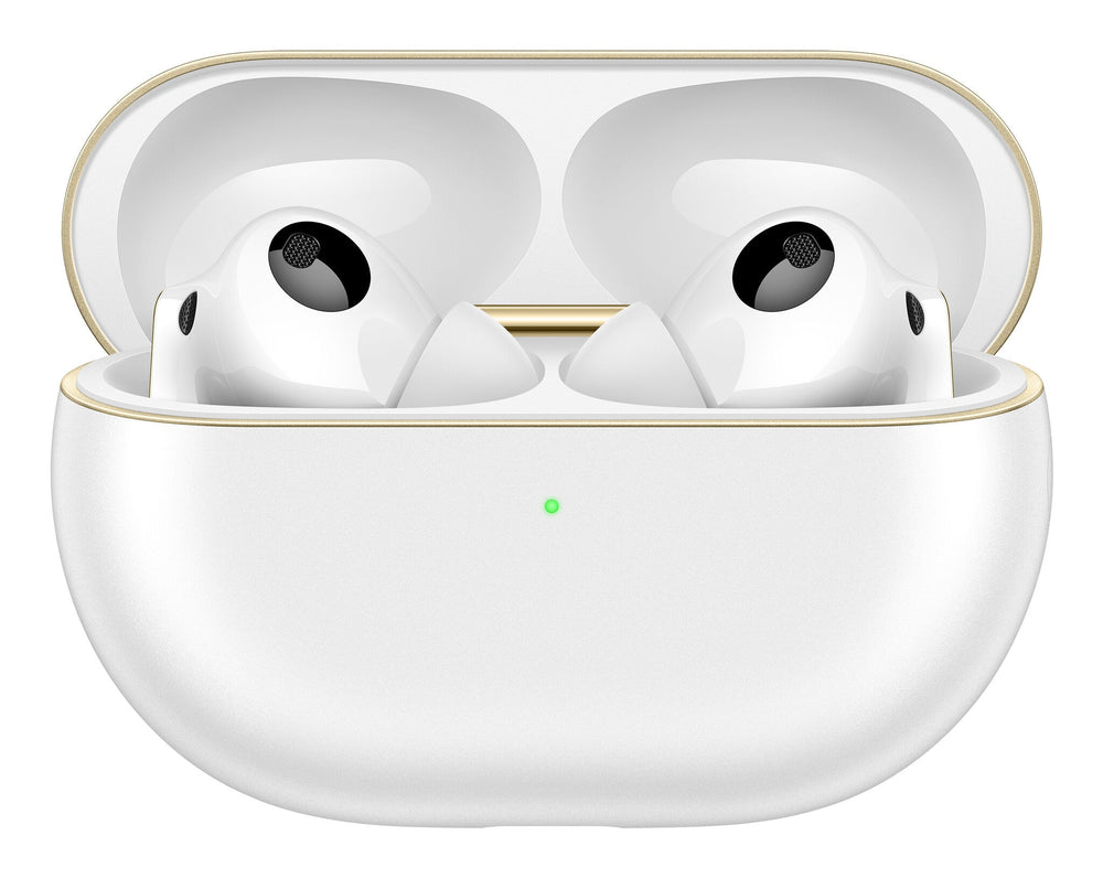 White Calls/Music/Sport/Everyday In-ear Headset. Wireless Bluetooth 5.2. Intraaural. Microphone type: Built-in. Built-in battery. Silver Sring Design. Marvel at the laser-engraved handle, a homage to the elegance of string instruments, and delight in the scintillating sounds.. HUAWEI SOUND. Cutting-edge technology recreates authentic sounds. Total immersion in what's meant to be heard. Lossless Sound Quality for Authentic Sounds. HUAWEI FreeBuds Pro 4 is the first pair of earbuds to support 2.3 Mbps lossless transmission,4 thanks to the Huawei-exclusive L2HC 4.0 audio codec5 and upgraded Polar Code technology. HWA Lossless and Hi-Res Wireless Audio certifications mean that this sterling sound really isn't too good to be true!. Tuned by Experts. HUAWEI FreeBuds Pro 4 is tuned by musicians at the Central Conservatory of Music to provide concert-level listening experience, and features two stunning sound effects to capture your imagination.. Classical. Immersive stereo audio effects to create an all-absorbing sound field with every detail.. Clear Calls from Any Place. Calls are crystal clear at wind speeds of up to 10 m/s6 and in situations with noise levels of up to 100 dB,6 such as concerts, live houses, or the metro, thanks to an advanced AI call-noise-cancellation algorithm, with powerful sound pickup made possible by a reverse bone conduction microphone working alongside three other microphones.. Standout Noise Cancellation. Brand new three-layer shape-memory foam ear tips cancel out up to 30% more ambient noise.7 With memory sponge, the ear tips automatically expand to fit your ear canals for a snugger fit.. Tune Out, Tune In. The tip fit test matches the noise cancellation parameters for two types of ear tips. This lets you customise your fit and listening experience while keeping noise at bay—even on flights or high-speed trains—with the help of intelligent dynamic ANC.. Nod to answer phone calls. Answer or reject incoming calls hands-free, just by nodding or shaking your head.. Performance. Bone conduction sensor. Yes. Gyroscope. Yes. Accelerometer. Yes. International Protection (IP) code. IP54. Control type. Touch. Control unit type. On-ear control unit. Volume control. Touch. Product colour. White. Headset type. Binaural. Recommended usage. Calls/Music/Sport/Everyday. Wearing style. In-ear. Product type. Headset. Ports & interfaces. Bluetooth profiles. AAC. Bluetooth version. 5.2. Bluetooth. Yes. USB connector. USB Type-C. Connectivity technology. Wireless. Headphones. Transparency mode. Yes. Noise canceling type. Active. Noise canceling. Yes. Driver type. Dynamic. Driver unit. 1.1 cm. Ear coupling. Intraaural. Microphone. Microphone noise-canceling. Yes. Microphone type. Built-in. Battery. Wireless charging. Yes. Battery voltage. 5 V. Battery charge indicator. Yes. Battery recharge time. 1 h. Charging source. USB, Wireless. Continuous audio playback time (ANC off). 7 h. Continuous audio playback time (charging case/ANC off). 33 h. Battery capacity (charging case). 510 mAh. Continuous audio playback time (charging case/ANC on). 23 h. Continuous audio playback time (ANC on). 5 h. Input current (charging case). 0.5 A. Right earpiece battery capacity. 55 mAh. Left earpiece battery capacity. 55 mAh. Battery type. Built-in battery. Battery operated. Yes. System requirements. Mobile operating systems supported. Android, iOS. Weight & dimensions. Charging case weight. 47 g. Charging case dimensions (W x D x H). 65.9 x 24.5 x 46.9 mm. Right earpiece weight. 5.8 g. Left earpiece weight. 5.8 g. Weight. 58.6 g. Height. 29.1 mm. Depth. 23.7 mm. Width. 21.8 mm. Packaging content. Quantity. 1. Extra earbuds. Yes. Cables included. USB Type-C. AC adapter included. No. Charging case capacity. 510 mAh. Charging case. Yes. Power. USB Type-C charging port. Yes
