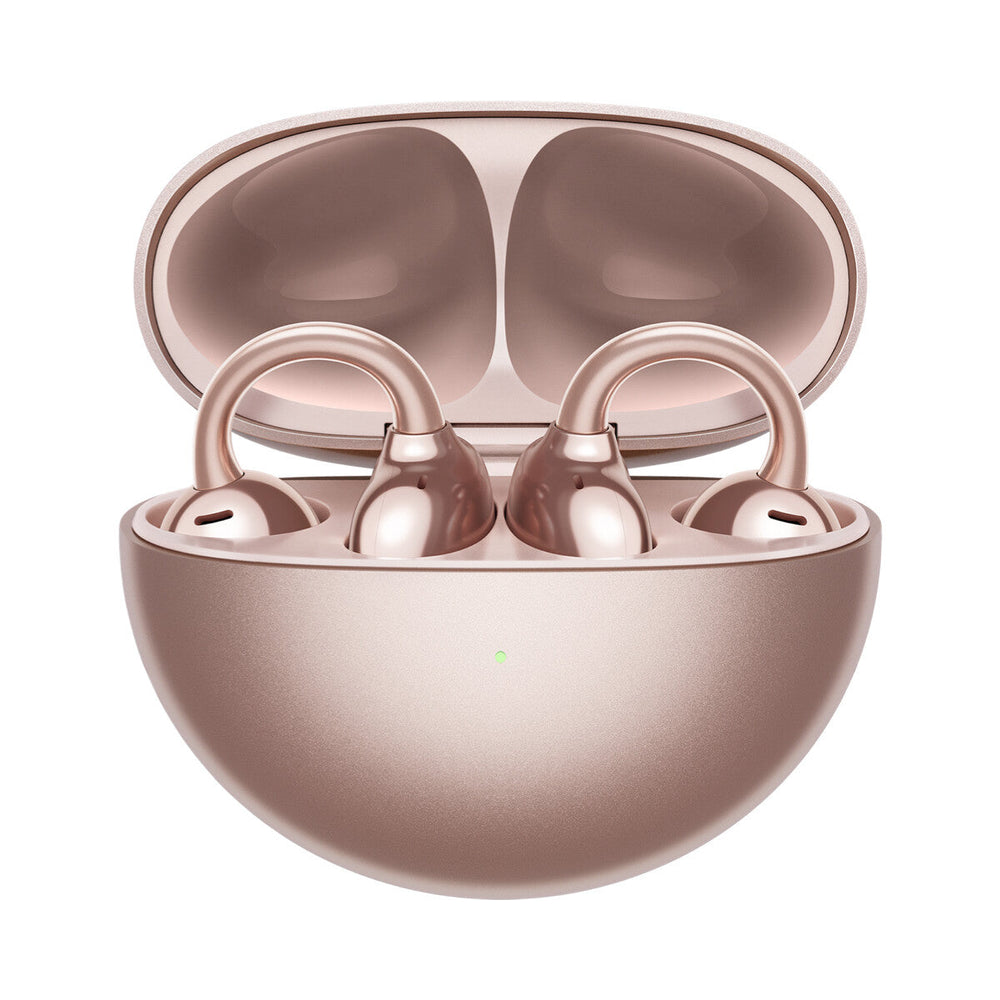 Rose gold Calls/Music Ear-hook Headset. True Wireless Stereo (TWS) USB connectivity Bluetooth. Intraaural Earbuds. Microphone type: Built-in. 55 mAh. Minimalist Approach. A minimalist spherical shape gives the earbuds a stylish look, and an ergonomic design makes them comfortable and feather-light. Each earbud weighs in at just 5.6 g4 and the open-ear design allows ears to breathe, while TPU reduces smudging and staining.. Pleasant Open-ear Listening. The earbuds are interchangeable, with self-adaptive left-right audio channels, meaning you can wear either earbud on either ear.. Incredible Durability. Having passed reliability tests,6 the C-bridge made of high-performance Ni-Ti shape-memory alloy snugly fits the majority of ears.. Secure Fit. With ergonomic design based on 10,000+ global human ear data7 for guaranteed comfort, multiple micrometeter-level size optimization, the earbuds will feel tailored to your ears.. Stay in Tune with Your Surroundings. Immerse yourself in music, while staying aware of changes in ambient sounds, whether in an office or doing exercise, thanks to the open-ear design.. Big Sound, Small Form-Factor. Thanks to the 10.8 mm dual-magnet high-sensitivity driver unit, the earbuds deliver sterling sound quality and clear vocals within a tiny, delicate body.. Direct Sound. Sound leakage is minimised by a sophisticated reverse sound waves system built inside the acoustic ball, meaning sounds are transmitted precisely into ear canal, making for a private listening experience.. AI Crystal-Clear Call. Enjoy crystal-clear calls1 with a delicate microphone system that works in tandem with a multi-channel deep neural network (DNN) algorithm to effectively pick out voices from ambient noises.. Long Battery Life. Listen for up to 8 hours when using the earbuds alone on a single charge, or listen for up to 36 hours3 with a fully charged charging case. Wearing a single earbud while having a fully charged charging case ensures a longer battery life.9 A 10-min charge sustains up to 3 hours of listening.. Gesture Controls. Tap on the Acoustic Ball, the C-bridge, or the Comfort Bean, for seamless control.. Earbud gestures can be customized11 to suit many features, such as waking up the voice assistant on your paired device.. Seamless Dual-Device Connections. Connect the HUAWEI FreeClip to two devices such as phones, tablets, PCs, or watches, and seamlessly switch audio between them, whether the device runs iOS, Android, or Windows.. Performance. Suitable for indoor use. Yes. Suitable for outdoor use. Yes. Suggested gender. Boy/Girl. Music playback. Yes. LED indicators. Yes. International Protection (IP) code. IP54. Control type. Touch. Operating keys. Answer/end call, Play/Pause, Track >. Product colour. Rose gold. Headset type. Binaural. Recommended usage. Calls/Music. Wearing style. Ear-hook. Product type. Headset. Ports & interfaces. Frequency band. 2.4 GHz. Bluetooth. Yes. USB connector. USB Type-C. USB connectivity. Yes. True Wireless Stereo (TWS) technology. Yes. Connectivity technology. True Wireless Stereo (TWS). Headphones. Ear coupling. Intraaural. Intraaural headphones type. Earbuds. Microphone. Microphone type. Built-in. Battery. Wireless charging. Yes. Power source. Battery. Battery charge indicator. Yes. Charging source. USB. Rechargeable battery. Yes. Battery capacity (charging case). 510 mAh. Continuous audio playback time (with charging case). 36 h. Continuous audio playback time. 8 h. Battery capacity. 55 mAh. System requirements. Mobile operating systems supported. Android, Windows CE, iOS. Music player. Audio formats supported. AAC, L2HC, SBC. Weight & dimensions. Charging case weight. 44.5 g. Charging case dimensions (W x D x H). 51.95 x 59.7 x 27.35 mm. Right earpiece weight. 5.6 g. Left earpiece weight. 5.6 g. Weight. 11.2 g. Height. 25.3 mm. Depth. 26.7 mm. Width. 22 mm. Packaging data. Package weight. 170.5 g. Package height. 100 mm. Package depth. 45 mm. Package width. 100 mm. Packaging content. Quantity. 1. Cables included. USB Type-C. Quick start guide. Yes. AC adapter included. Yes. Built-in display (charging case). No. Charging case connector type. USB Type-C. Charging case type. Wired & Wireless. Charging case capacity. 510 mAh. Charging case. Yes. Power. USB Type-C charging port. Yes. manual pdf