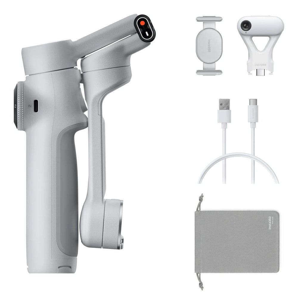 Smartphone camera stabilizer. Foldable. Rotating. Maximum weight capacity: 0.3 kg. Bluetooth. Lithium-Ion (Li-Ion) 1100 mAh. Light grey. Insta360 Flow 2 AI Tracker Grey. Features. Maximum device depth. 1 cm. Maximum device width. 8.4 cm. Minimum device depth. 6.9 mm. Minimum device width. 6.4 cm. Maximum weight capacity. 0.3 kg. Pan range. -210 - 120°. Tilt angle range. -99 - 231°. Rotating. Yes. Number of axis. 3. Foldable. Yes. Product colour. Light grey. Market segment. Consumer. Type. Smartphone camera stabilizer. Ports & interfaces. Bluetooth version. 5.0. Bluetooth. Yes. Power. Operating time. 10 h. Charging time. 2 h. Battery capacity. 1100 mAh. Built-in battery. Yes. Battery technology. Lithium-Ion (Li-Ion). Weight & dimensions. Dimensions folded (WxDxH). 97.9 x 36.7 x 178.4 mm. Weight. 348 g. Height. 282.1 mm. Depth. 54 mm. Width. 121.1 mm. Packaging content. Cables included. USB. Carrying case. Yes