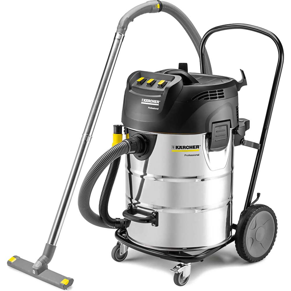 The Karcher NT 70/3 ME TC is a powerful high capacity wet and dry vacuum cleaner with three suction motors for heavy duty use. Featuring a 70 litre stainless steel container and tilting chassis for easy emptying, the NT 70/3 ME TC also benefits from a push handle, integrated accessory storage, and a drain hose for draining liquids from the tank after wet pick up. The three motors can be independently switched on or off, enabling the machine to use less power and run quieter when maximum performance is not required. Features & Benefits • Karcher Professional wet and dry vacuum cleaner • Three separate motors which can be independently switched on or off • Stainless steel 70 litre tank • Tilting chassis for easy emptying • Ergonomic push handle for mobility • Metal bumper protects the chassis from accidental impacts • Integrated storage for cleaning tools • Drain hose for draining the tank after wet pick up Specifications • Current type (Ph/V/Hz): 1 / 220 - 240 / 50 - 60 • Air flow (l/s): 3 x 74 • Vacuum (mbar/kPa): 254 / 25.4 • Container content (l): 70 • Container material: Stainless steel • Rated input power (W): max. 3600 • Standard nominal size: ID 40 • Cable length (m): 10 • Sound pressure level (dB(A)): 83 • Dimensions (L × W × H) (mm): 510 x 645 x 990 • Weight without accessories (kg): 29.9 • Weight incl. packaging (kg): 35.8 Contents • NT 70/3 ME TC Wet and Dry Vacuum Cleaner 240v • Suction Hose (4 metres) • Suction Tubes (0.5m, x2) • Wet and Dry Floor Tool • Crevice Nozzle • Paper Catridge Filter